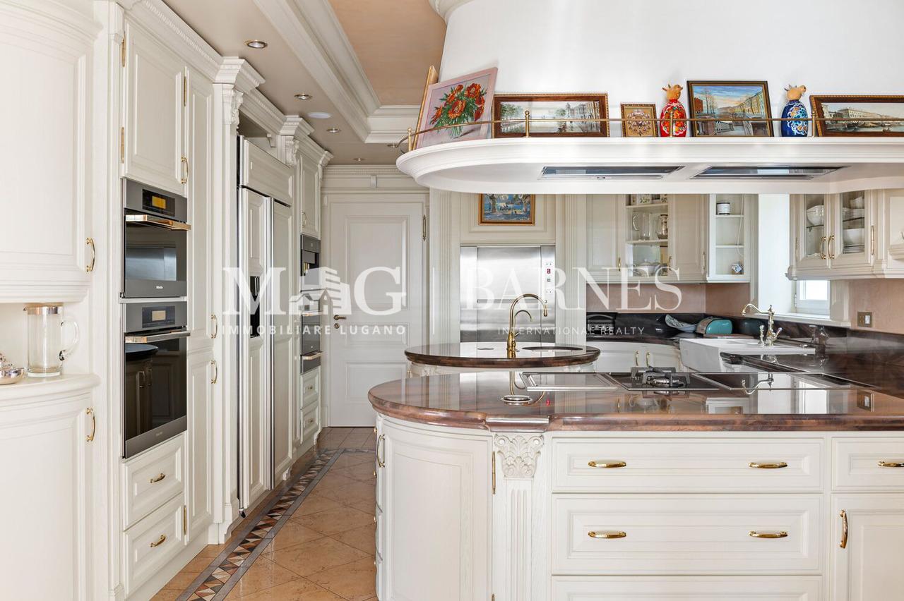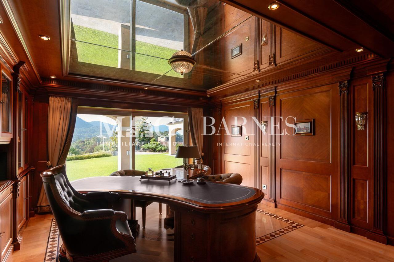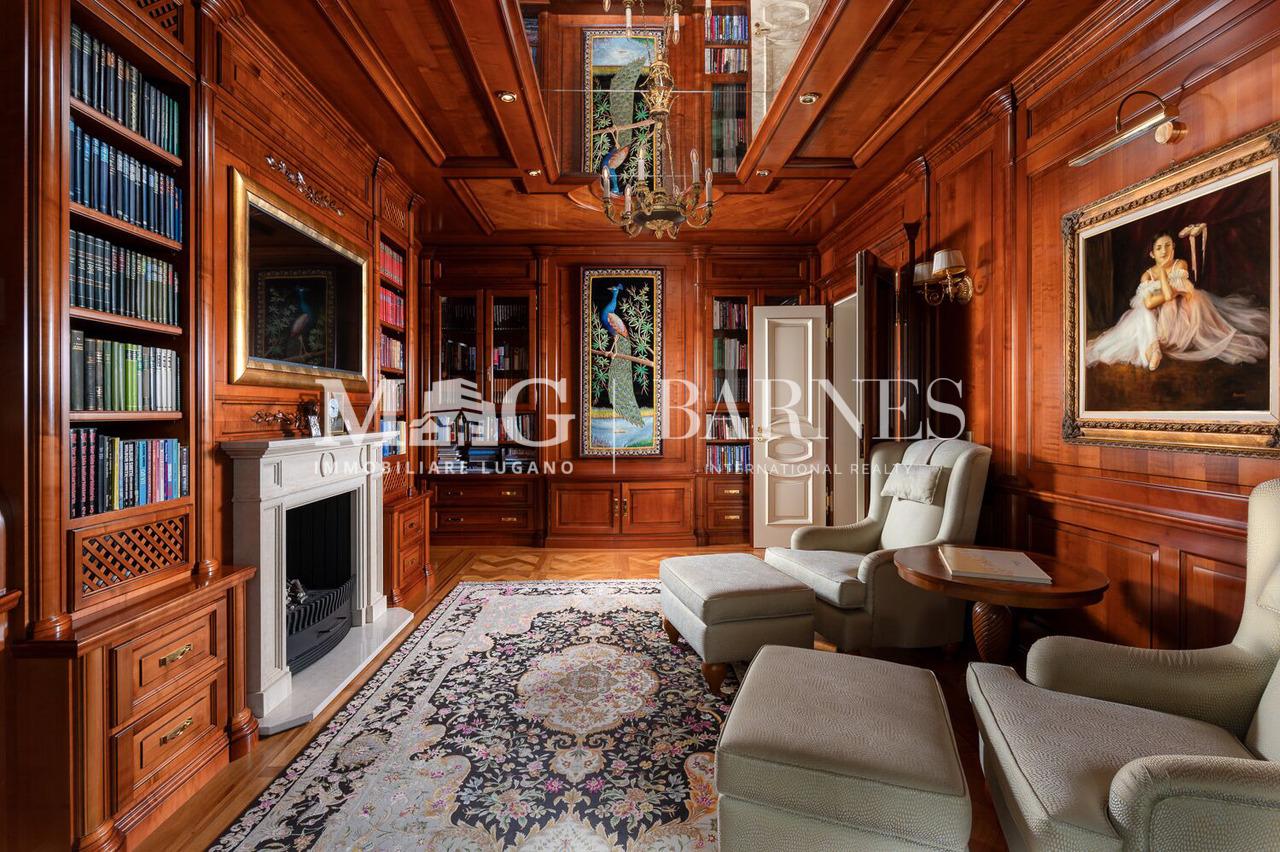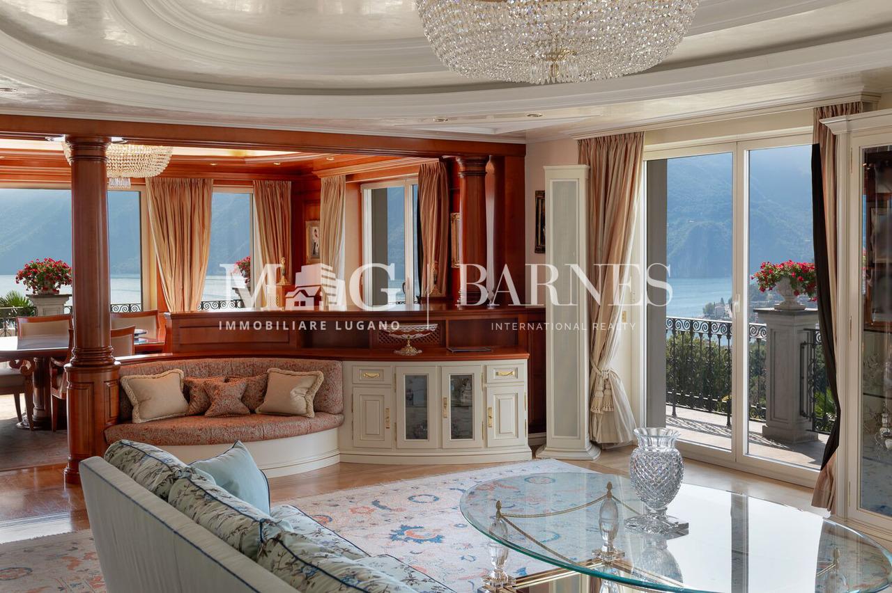 Eingebettet in eine Oase der Ruhe und Privatsphäre, nur wenige Minuten vom pulsierenden Herzen Luganos entfernt, stellt diese außergewöhnliche mediterrane Villa eine der exklusivsten Residenzen im Tessin dar. Direkt auf den Luganer See blickend und dank der günstigen Südlage von der Sonne geküsst, dominiert das Anwesen die Landschaft mit Eleganz und Diskretion.