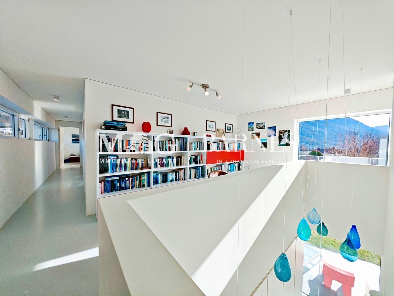In einer Wohnlage in Lugano - Dino bieten wir eine moderne Villa aus dem Jahr 2014 zum Verkauf an, die sich durch zeitgenössische Linien, großzügige Räume und eine hervorragende Kontinuität zwischen Innen und Außen auszeichnet. Die großen Glasflächen verstärken das natürliche Licht und schaffen einen harmonischen Dialog mit dem privaten Garten und den Terrassen.