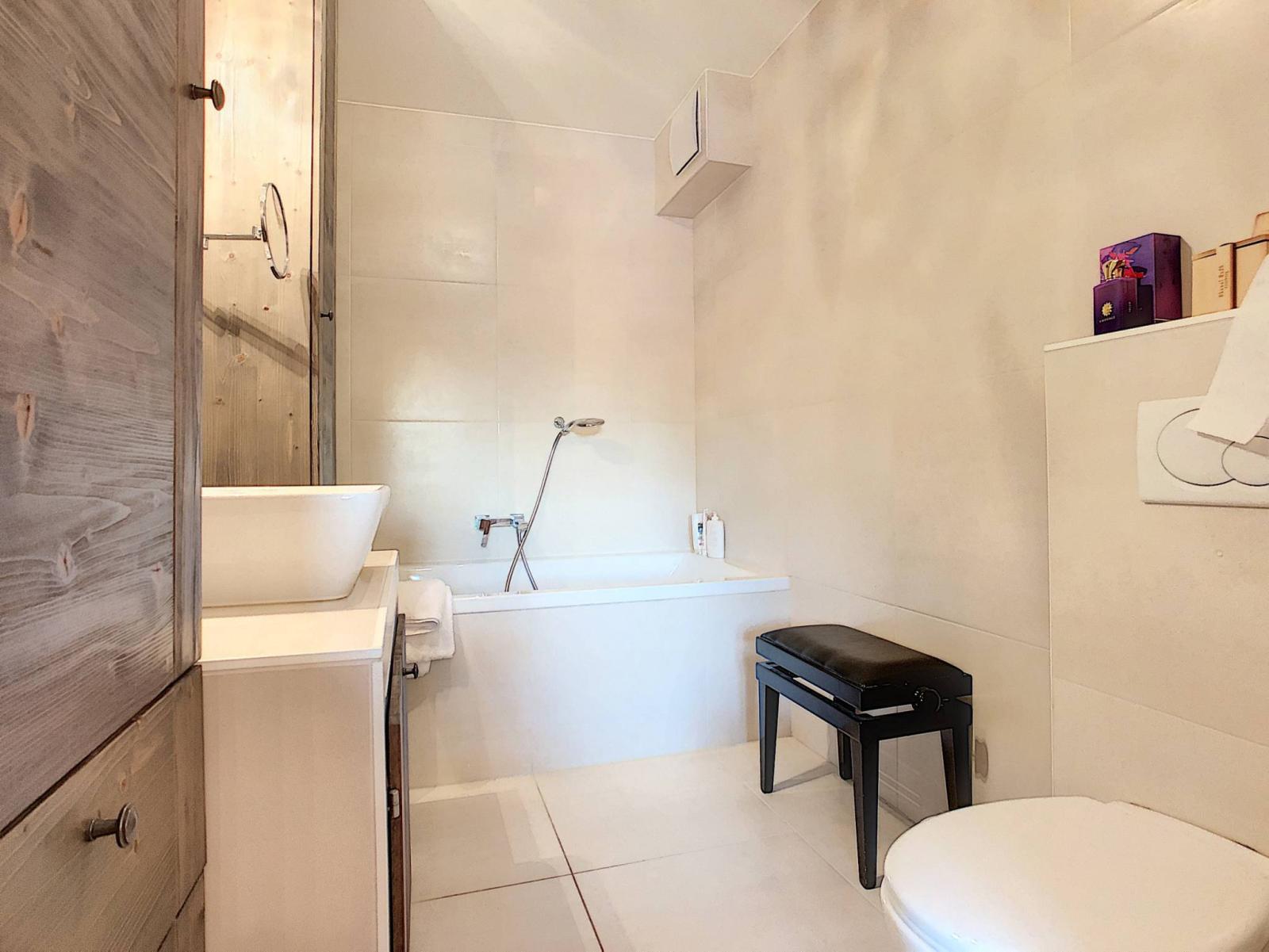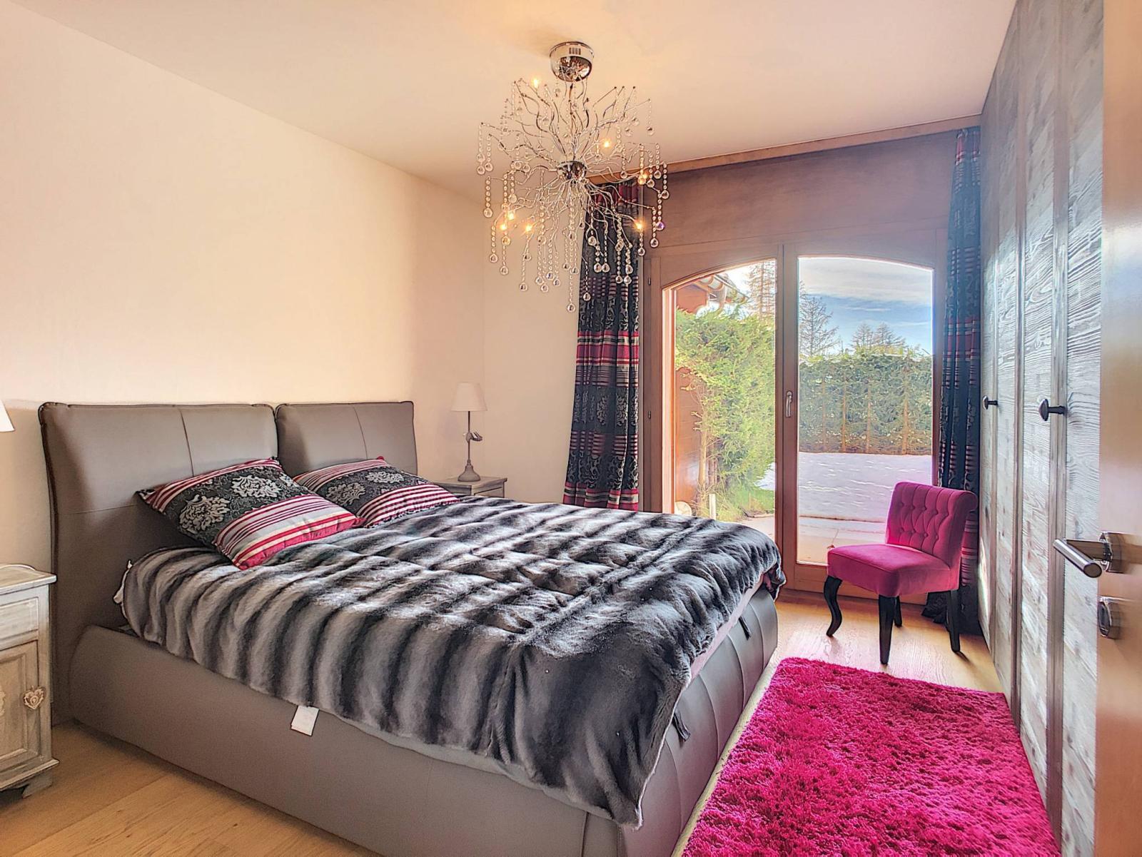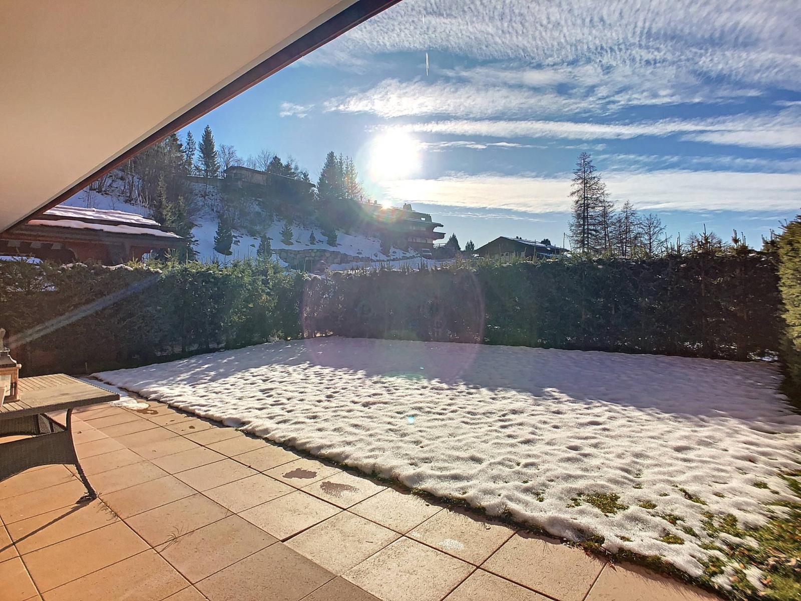 Wir haben uns in dieses charmante Apartment verliebt, das in einer Luxusresidenz liegt, nur wenige Autominuten vom Zentrum von Crans entfernt. In perfektem Allgemeinzustand, ordentlich und hell, werden Sie von der gemütlichen Atmosphäre dieser Wohnung verführt. Ruhig gelegen, auf einem Weg ohne Ausgänge, profitieren Sie außerdem von einer schönen gepflasterten und überdachten Terrasse mit Ihrem privaten Garten von ca. 100 m².