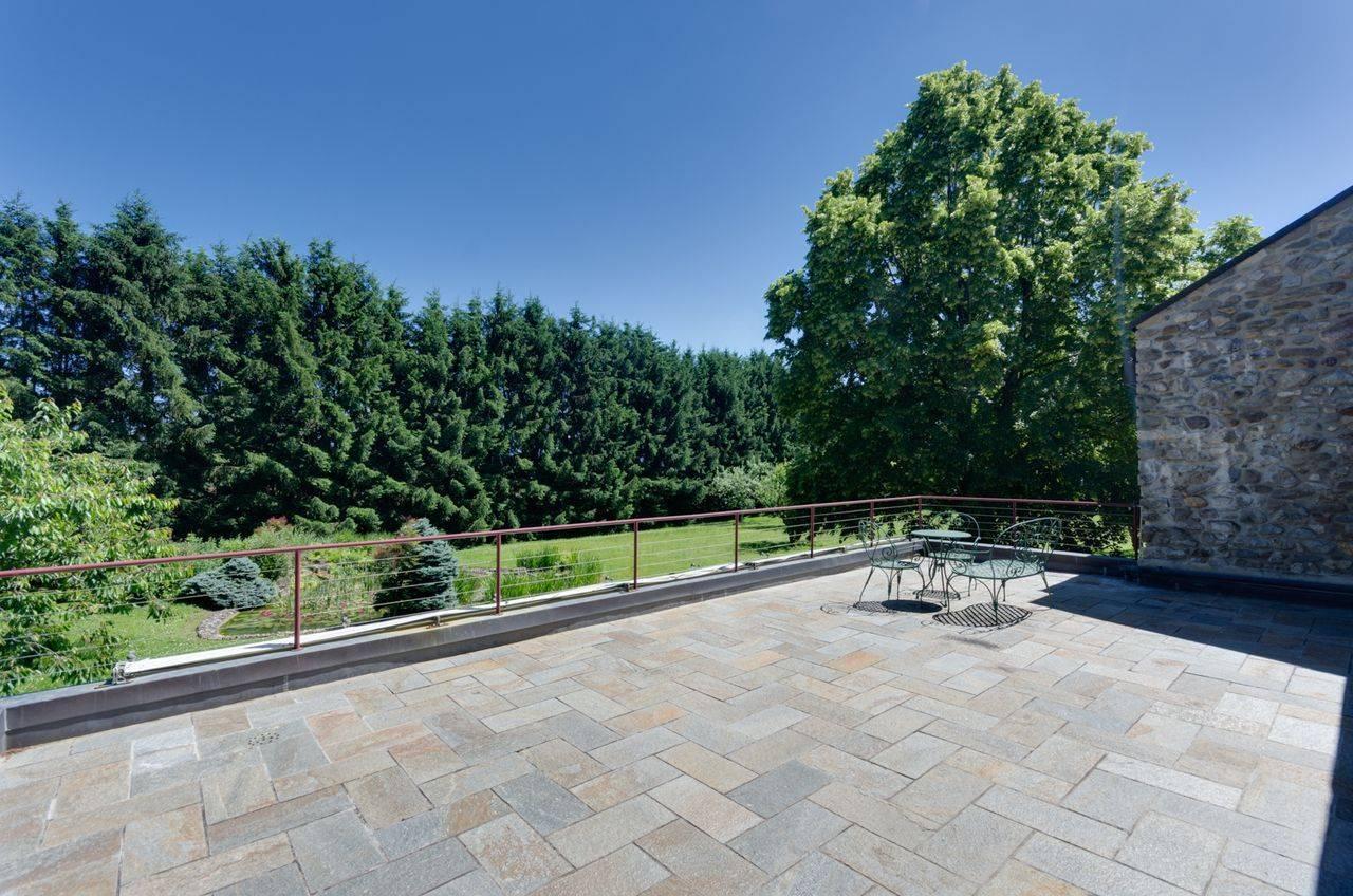 Historisch gesehen handelt es sich bei dem Gebäude um ein altes Bauernhaus, das komplett restauriert, umgebaut und dann erweitert wurde, um ein Potenzial von ca. 700 m² Wohnfläche zu nutzen, verteilt auf 3 Ebenen und ein Nebengebäude. Tatsächlich sind es rund 50 Jahre Baugeschichte innerhalb derselben Familie, der das Anwesen am Herzen lag und die daher mit viel Nachdenken und Energie hervorgehoben wurde. Im Erdgeschoss haben alle Räume einen Zugang nach draußen und somit einen Blick ins umliegende Grün. In diesem Bauwerk vermischen sich mehrere Baustile.