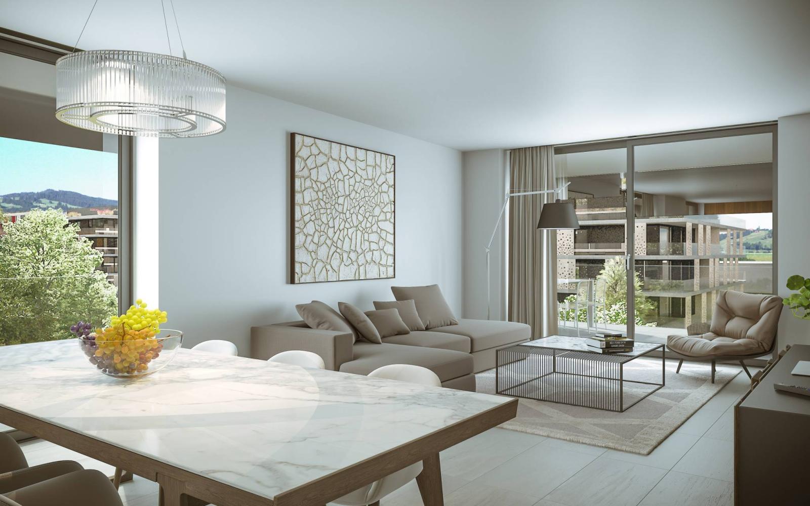 Kommen Sie und entdecken Sie das letzte Gebäude einer großartigen Aktion mit PPE-Wohnungen – Viertel Pâla in Bulle – L'Alpage ist ein Luxusgebäude in einem wunderschönen bewaldeten Park.