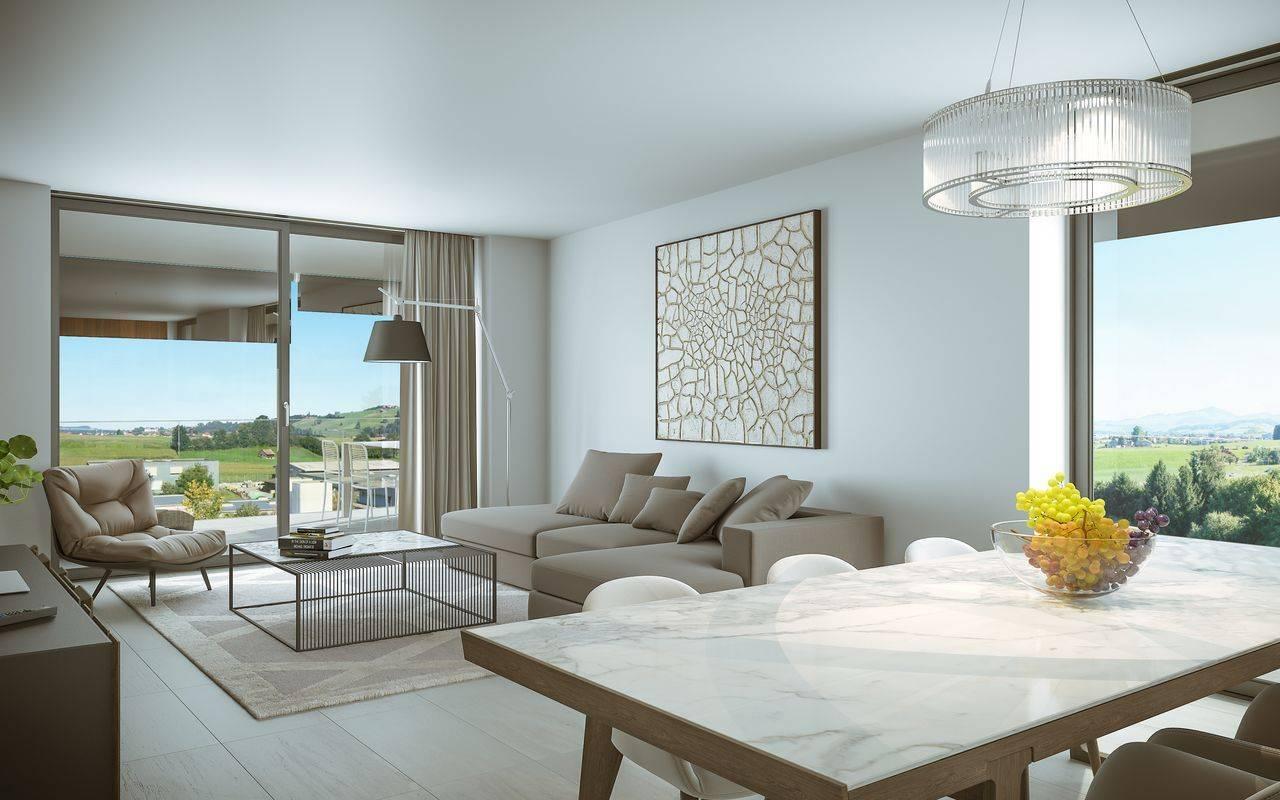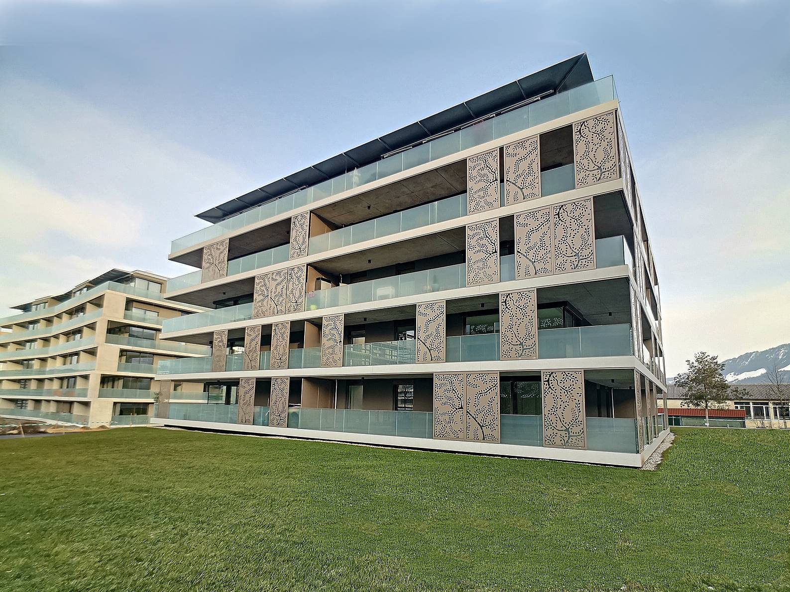 Kommen Sie und entdecken Sie das letzte Gebäude einer großartigen Aktion mit PPE-Wohnungen – Viertel Pâla in Bulle – L'Alpage ist ein Luxusgebäude in einem wunderschönen bewaldeten Park.