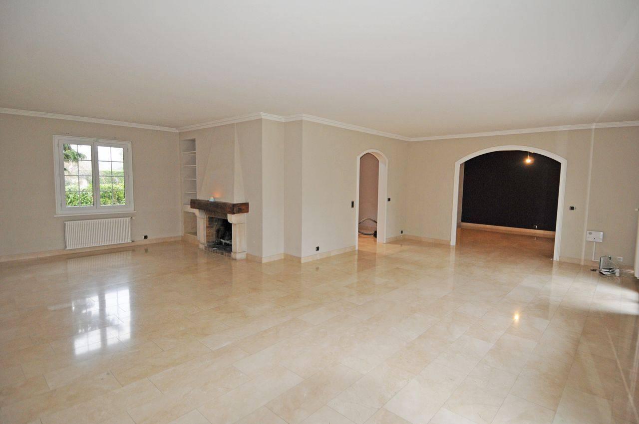 Im Erdgeschoss: große Eingangshalle mit Tageslichtschacht, Gäste-WC/Waschbecken, ein großes L-förmiges Wohnzimmer mit Kamin, ein großes Esszimmer, eine schöne Einbauküche sowie eine schöne teilweise überdachte Terrasse.