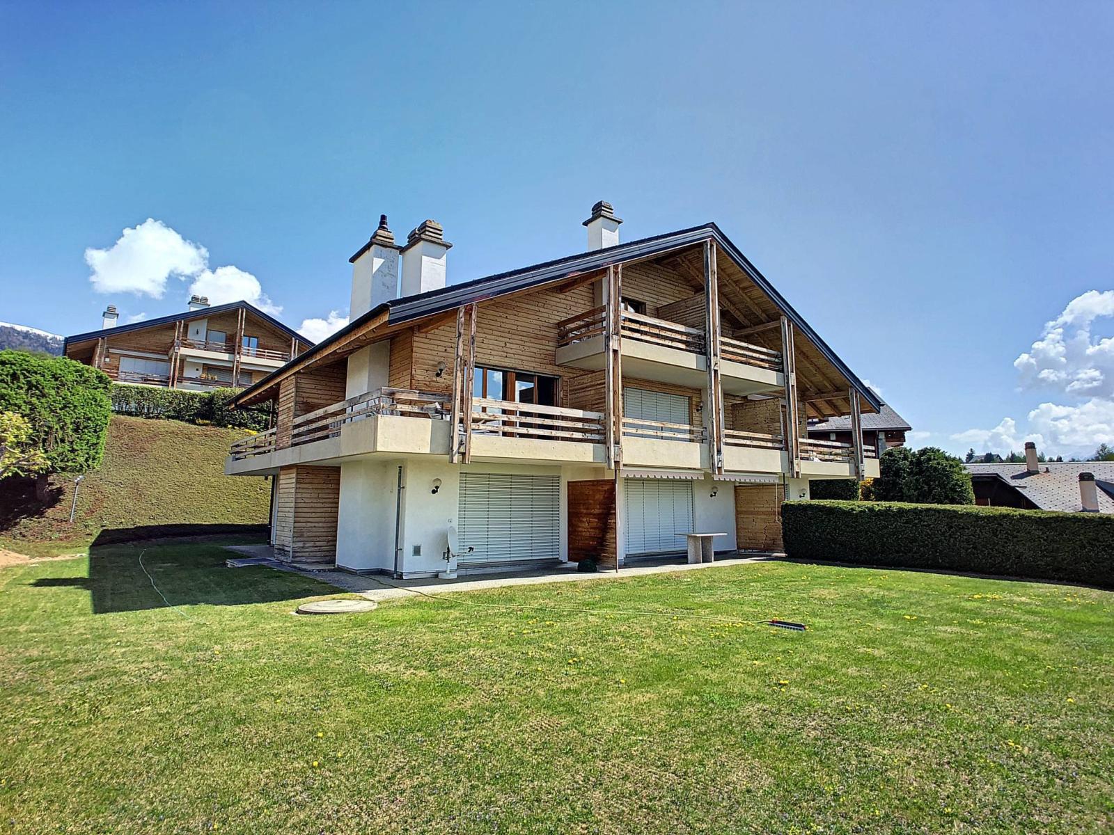 Genießen Sie einen herrlichen Blick auf die Rhône-Ebene (bis nach Martigny) und die Alpen und entdecken Sie dieses schöne Apartment in einer ruhigen Residenz, nur einen Steinwurf vom 18-Loch-Golfplatz Ballesteros entfernt.