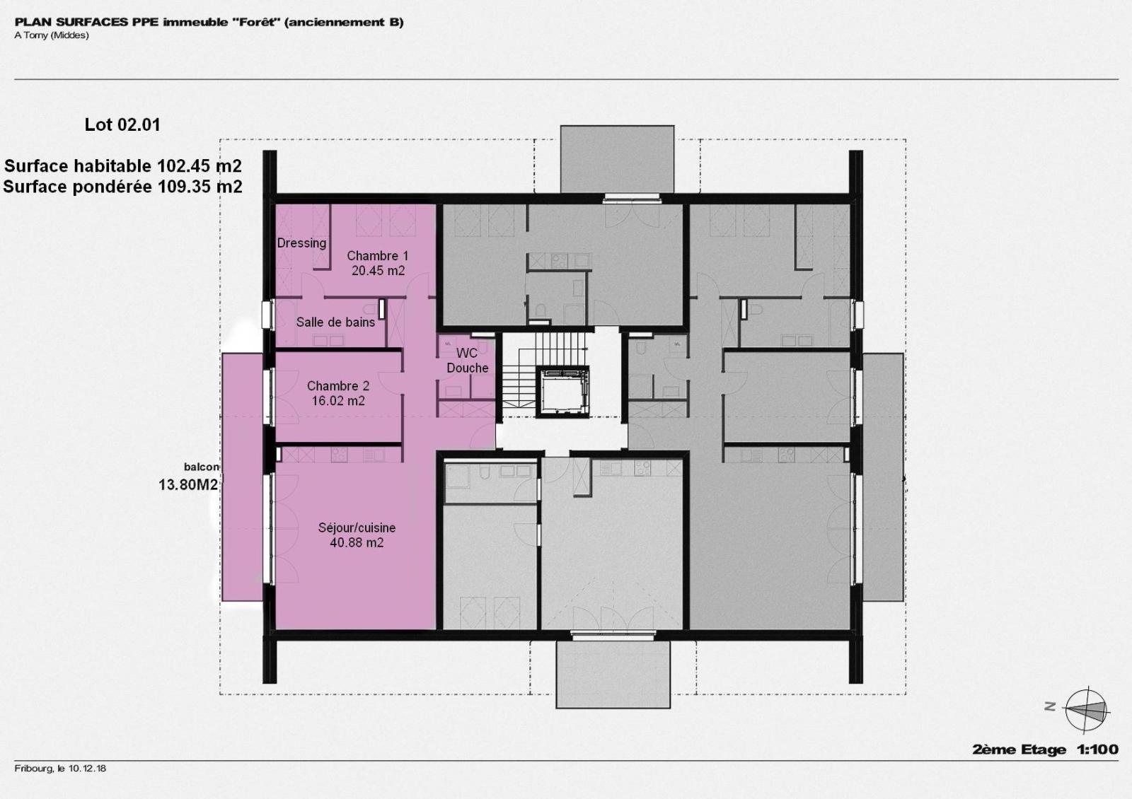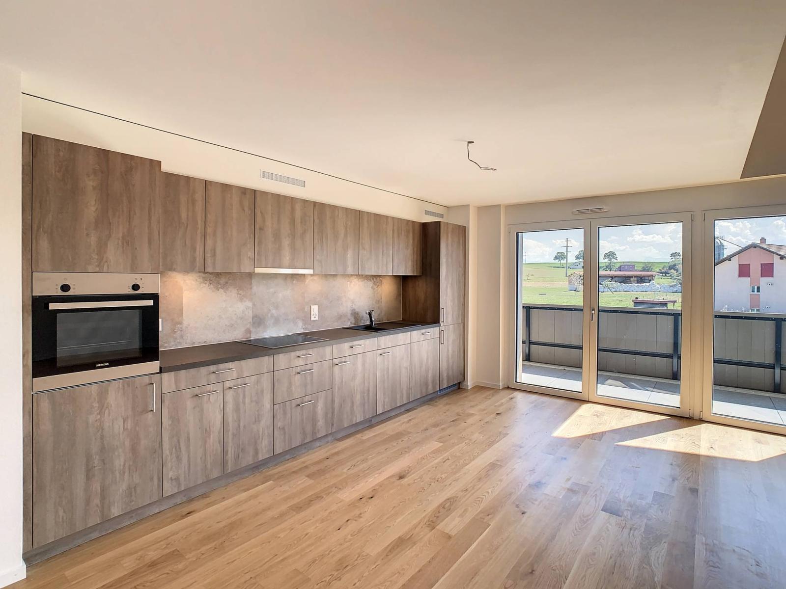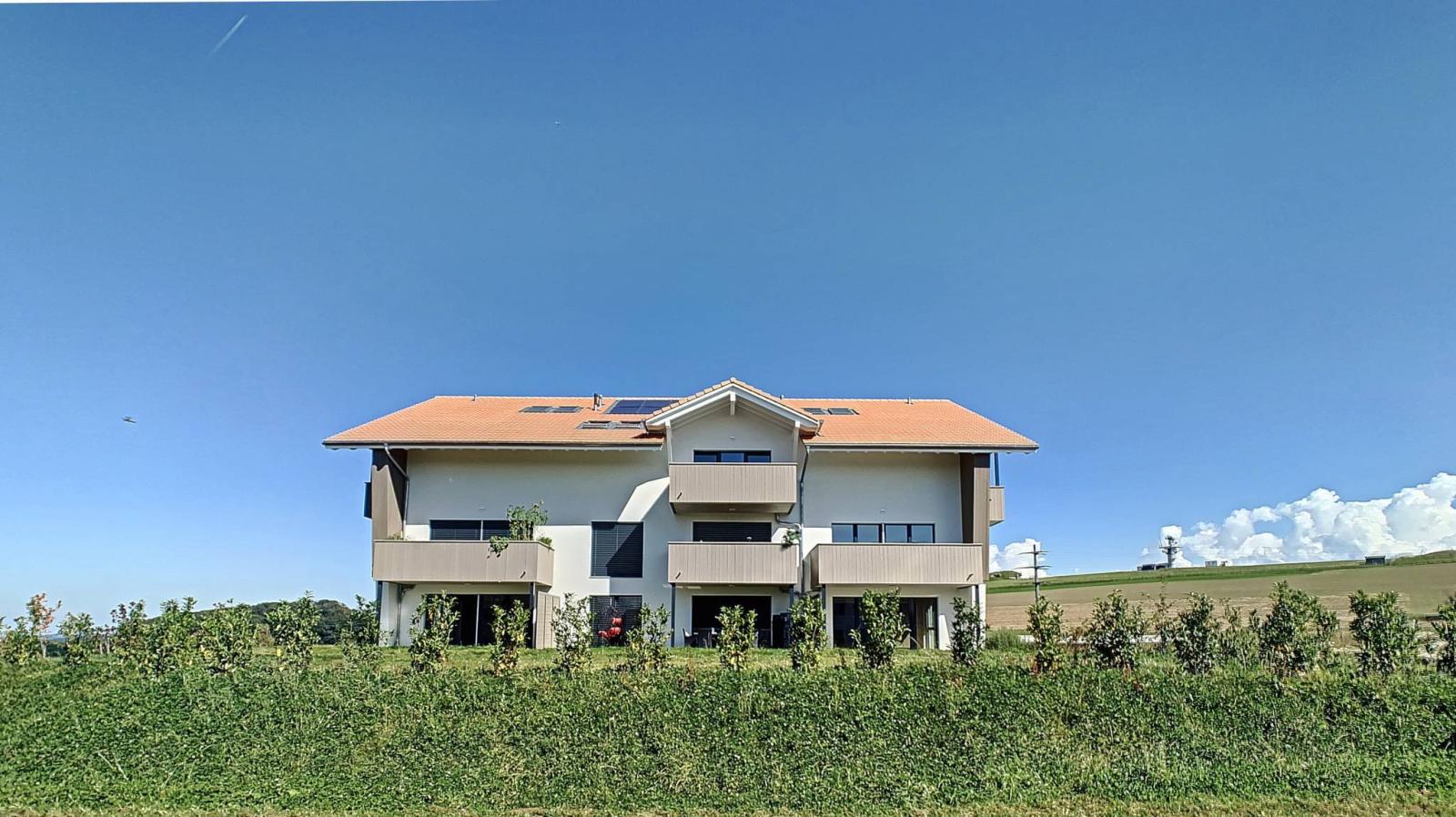 Ideal gelegen zwischen Freiburg und Payerne verfügt diese neue 3,5-Zimmer-Wohnung über eine Wohnfläche von 103 m² und einen Balkon von 14 m², also insgesamt eine gewichtete Wohnfläche von ca. 110 m². Es bietet ein idyllisches Wohnumfeld, das die Nähe zu den beiden Städten verbindet und gleichzeitig von einer grünen Umgebung am Rande eines landwirtschaftlichen Gebiets profitiert.