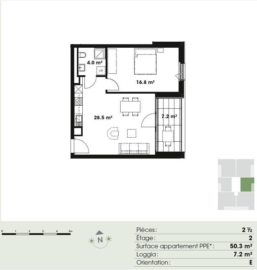 Die Aktion besteht aus zwei MINERGIE-zertifizierten Gebäuden, die als PPE verkauft werden, in einem neuen, im Bau befindlichen Wohngebiet. Die Aktion besteht aus eleganten Wohnungen unterschiedlicher Typologie; Dies in einem zeitgenössischen Umfeld, das zu einer neuen Anpassung der Stadtgestaltung führt.