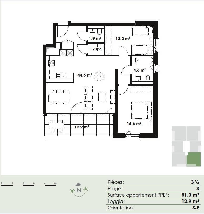 3,5 Zimmer im 3. Stock – Grundstück Nr. F3.4
