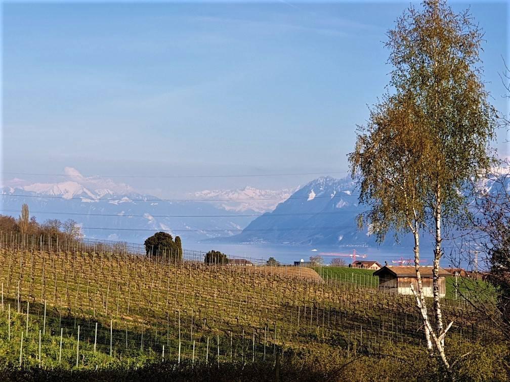 Hübsche 8,5-Zimmer-Villa (5 Schlafzimmer) im Grünen, mit Charme und herrlicher freier Aussicht auf den See, die Alpen, die Weinberge und das berühmte Schloss.