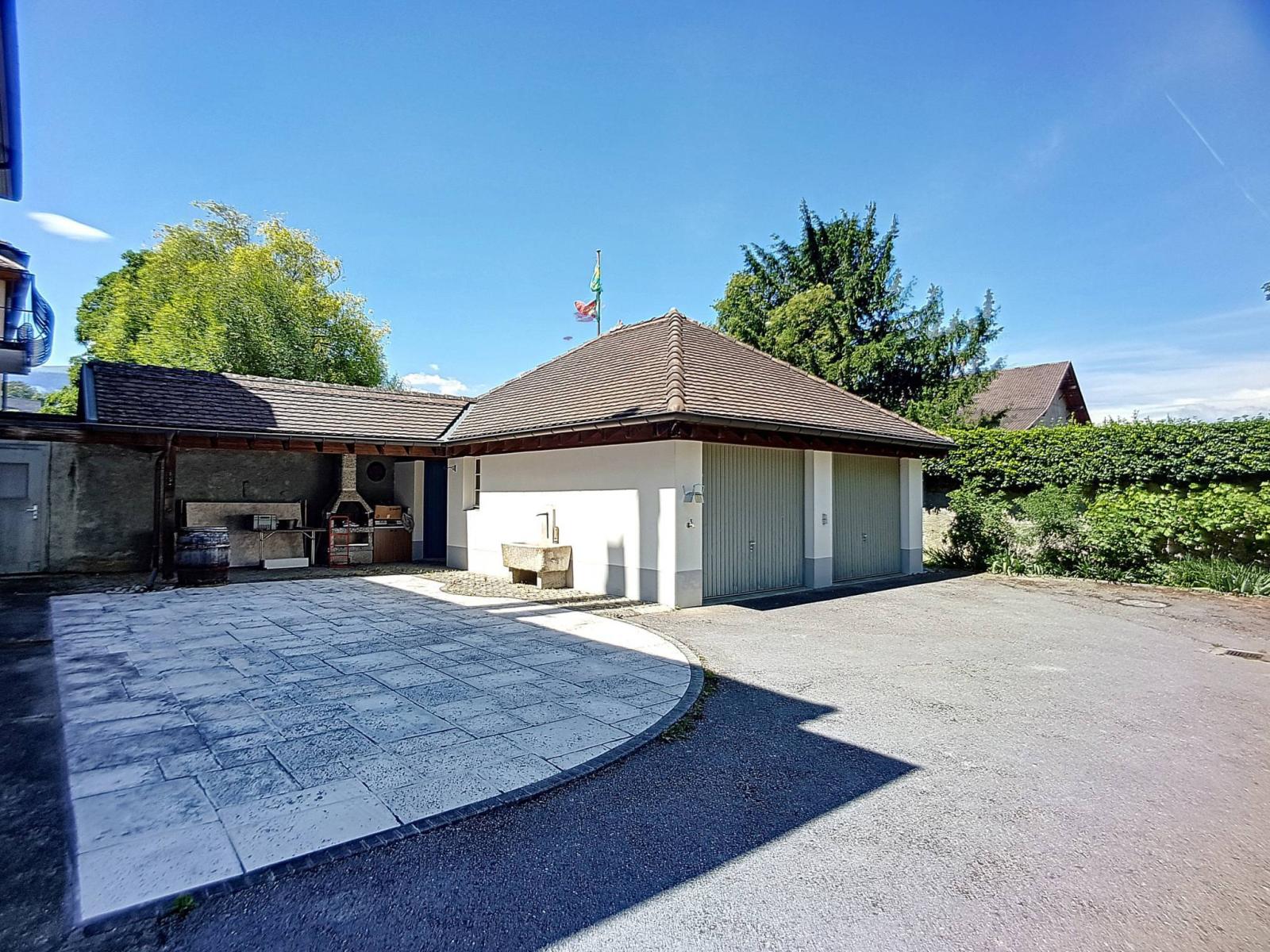 Eine Terrasse, ein Hühnerstall, eine Außendoppelgarage sowie ein Innenhof mit mehreren Außenparkplätzen vervollständigen diese schöne Residenz.