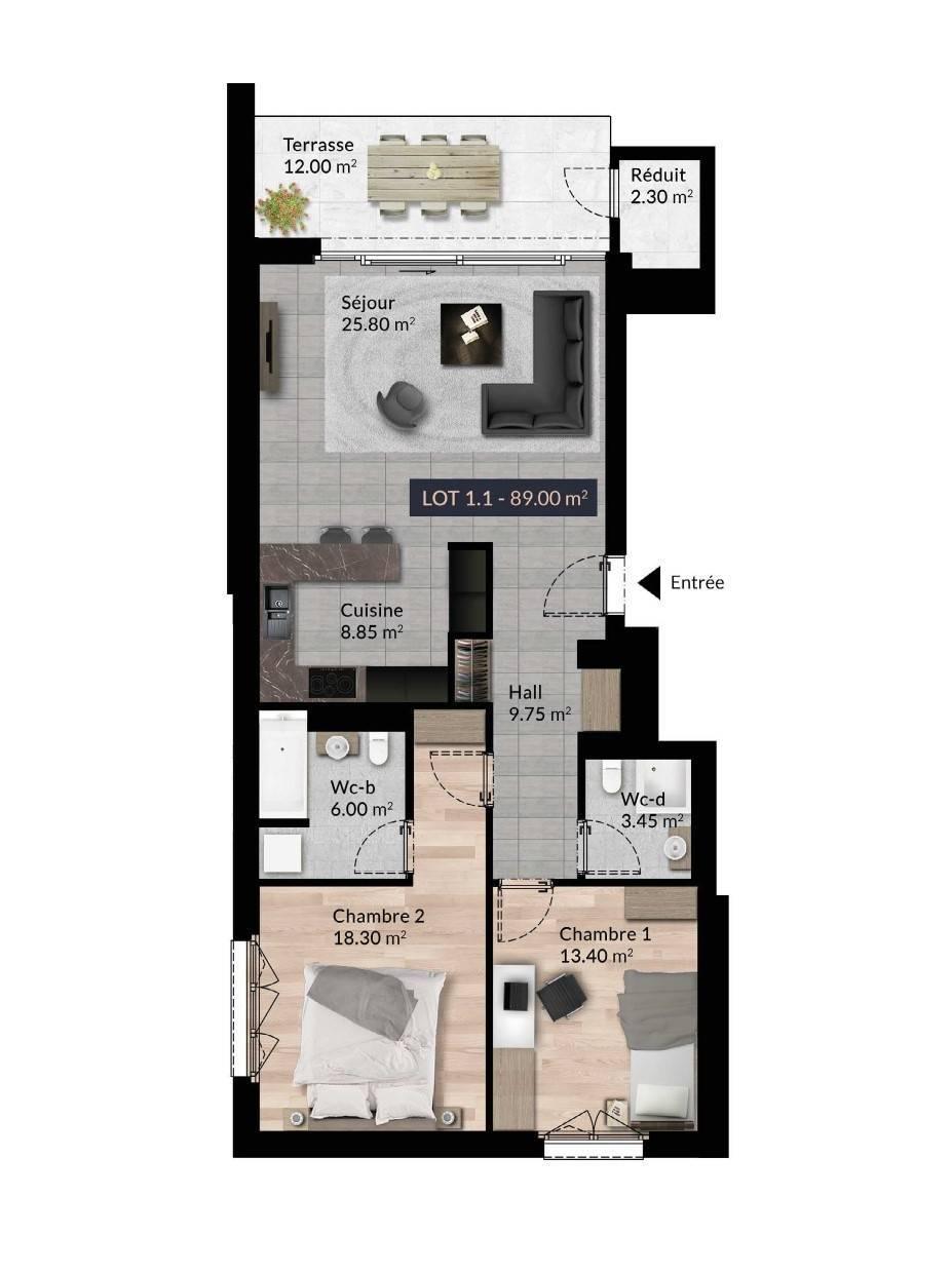 Die vorgeschlagene Wohnung besteht aus: - Eingangshalle