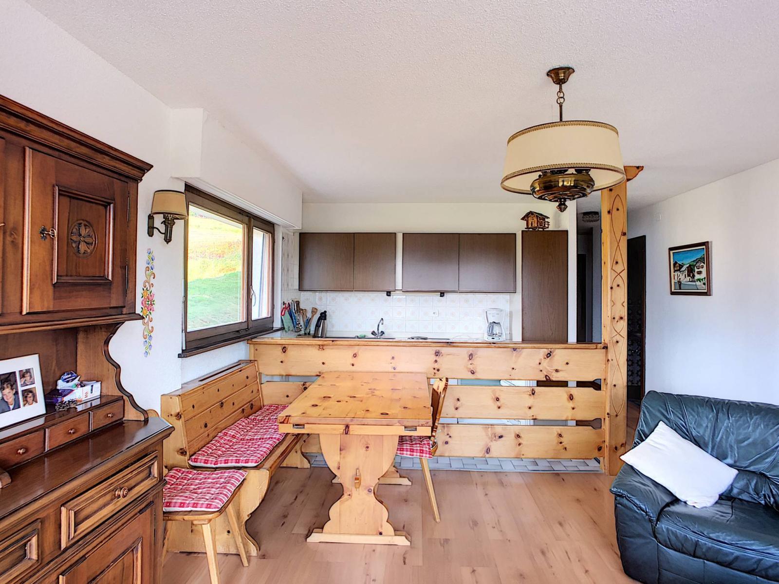 Am Ende einer Sackgasse, in einem Wohngebiet, profitiert dieses Apartment von einer idyllischen Umgebung, weniger als 5 Autominuten vom Zentrum des Resorts entfernt. Durchgehend, hell und geräumig, befindet es sich in einem sehr guten Allgemeinzustand, bedarf aber dennoch einer Modernisierung.
