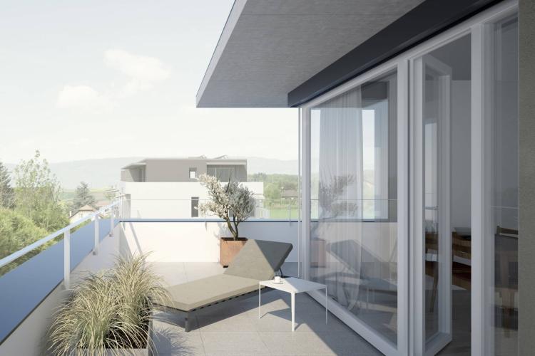 Das Projekt berücksichtigt die Ausrichtungen, Sichtabstände und Einschränkungen des Standorts, um die verschiedenen Typologien zu definieren, die von 2,5 bis 4,5 Zimmern reichen. Alle Wohnungen verfügen über überwiegend nach Süden ausgerichtete Balkone. Penthäuser mit großen Terrassen krönen jedes der beiden Gebäude.