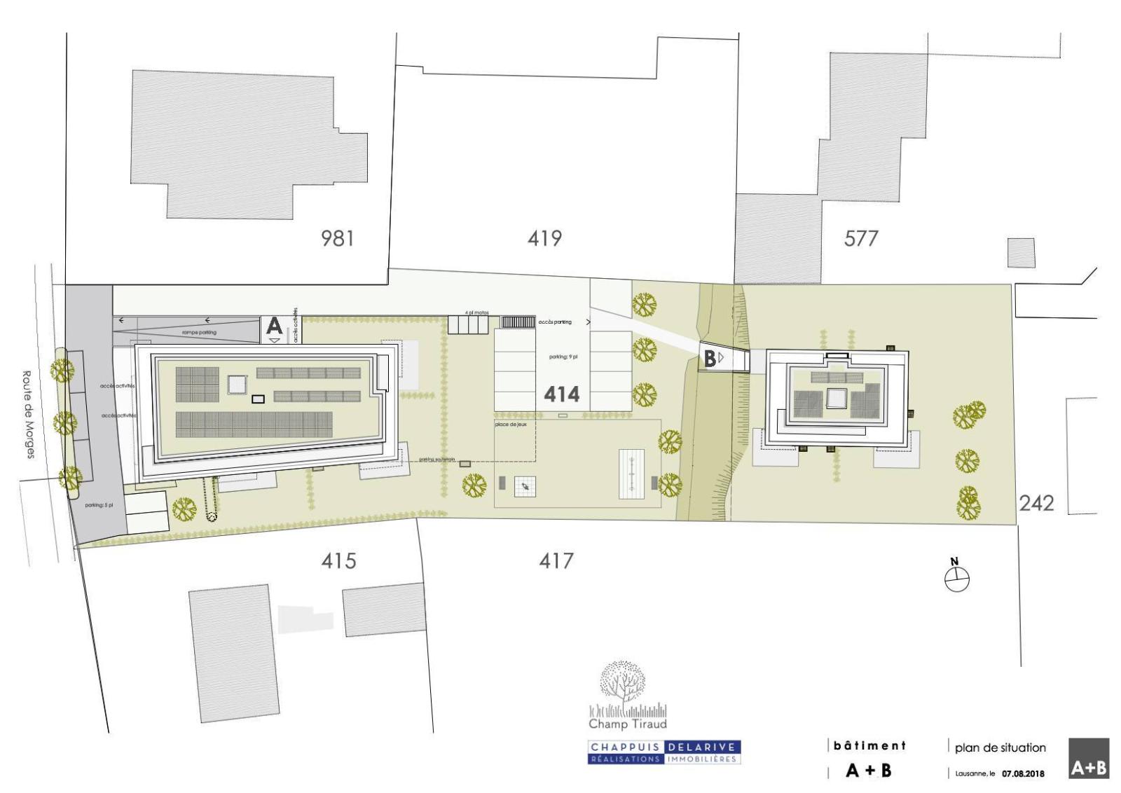 Das Grundstück liegt in der Nähe des Stadtzentrums und verfügt über zwei Zonen, eine gemischte Zone mit geringer Dichte (B) und eine Zone mit mittlerer Dichte (A). Als Ergebnis präsentiert das Projekt zwei differenzierte Gebäude, die jeweils an die jeweilige Zone angepasst sind: Das am weitesten von der Straße entfernte Gebäude in der Mischzone B bietet ausschließlich Wohnraum, während das andere in der Mischzone A zusätzlich Wohnraum bietet , zwei Bereiche, die für Aktivitäten vorgesehen sind.
