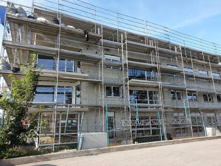 Die zeitgenössische Architektur des Ganzen ist nüchtern und weist eine kontrastierende Farbauswahl zwischen den Böden und den Dachböden auf. Die Wahl der Materialien wie sauberer Beton für die Balkone und einen Teil der Aktivitätsflächen harmoniert harmonisch mit den Edelstahlgeländern und der Struktur der Feinputzfassaden.