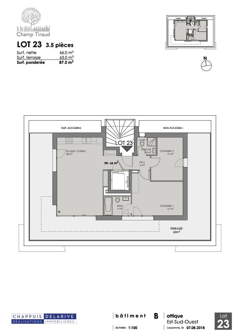 Das Projekt berücksichtigt die Ausrichtungen, Sichtabstände und Einschränkungen des Standorts, um die verschiedenen Typologien zu definieren, die von 2,5 bis 4,5 Zimmern reichen. Alle Wohnungen verfügen über überwiegend nach Süden ausgerichtete Balkone. Penthäuser mit großen Terrassen krönen jedes der beiden Gebäude.