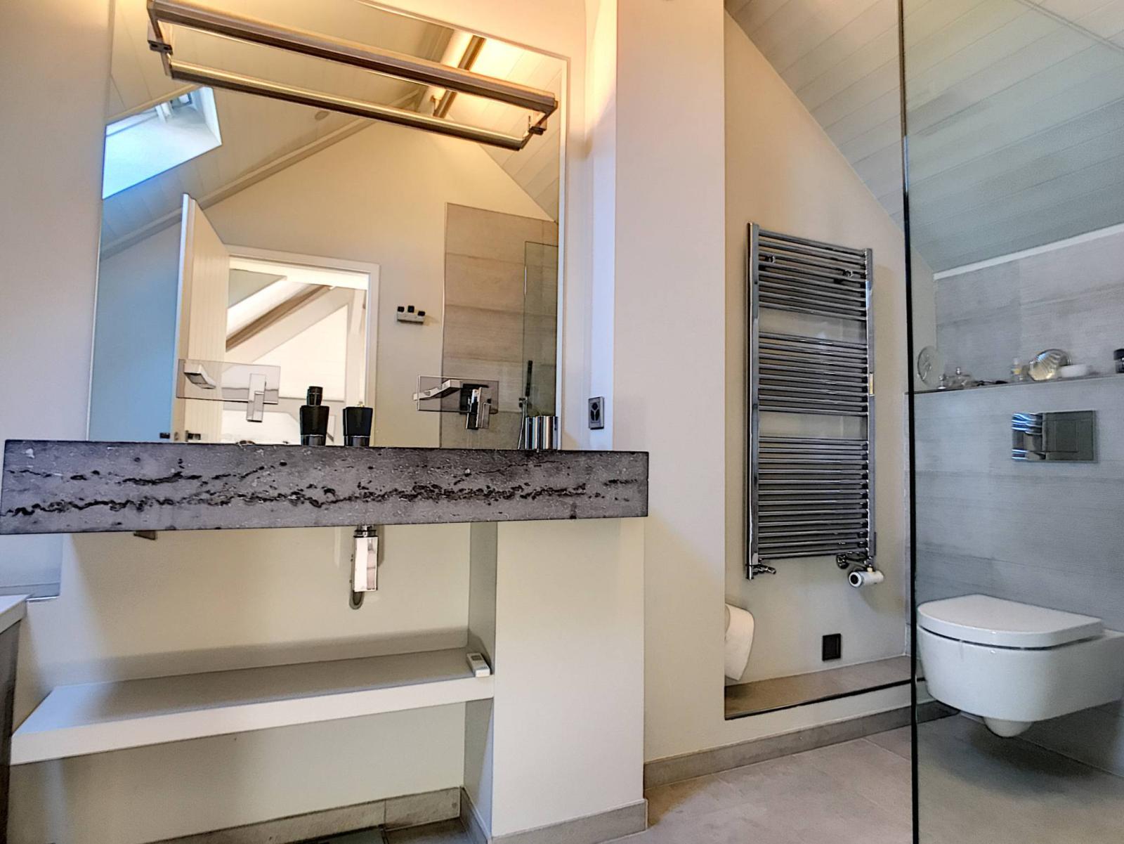 Eingangsbereich, Gäste-WC. Großes Wohn-/Esszimmer mit Kamin und zentraler Treppe mit Zugang zum Zwischengeschoss. Ausgestattete und ausgestattete Küche mit Essbereich. Großes Hauptschlafzimmer mit Kleiderschrank, ein Büro/Schlafzimmer, ein begehbares Duschbad.