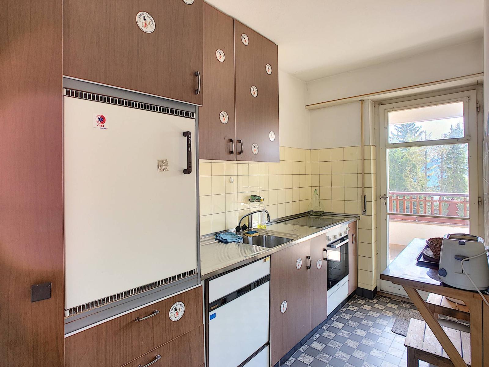 Die Wohnung, deren Wohnzimmer sich alle zum Südbalkon hin öffnen, ist hell und geräumig. Es wird auch mit einem Serviceschlafzimmer, einem Skiraum, einem Keller und einer beheizten Garagenbox verkauft (zusätzlich zum Verkaufspreis, aber nicht obligatorisch).