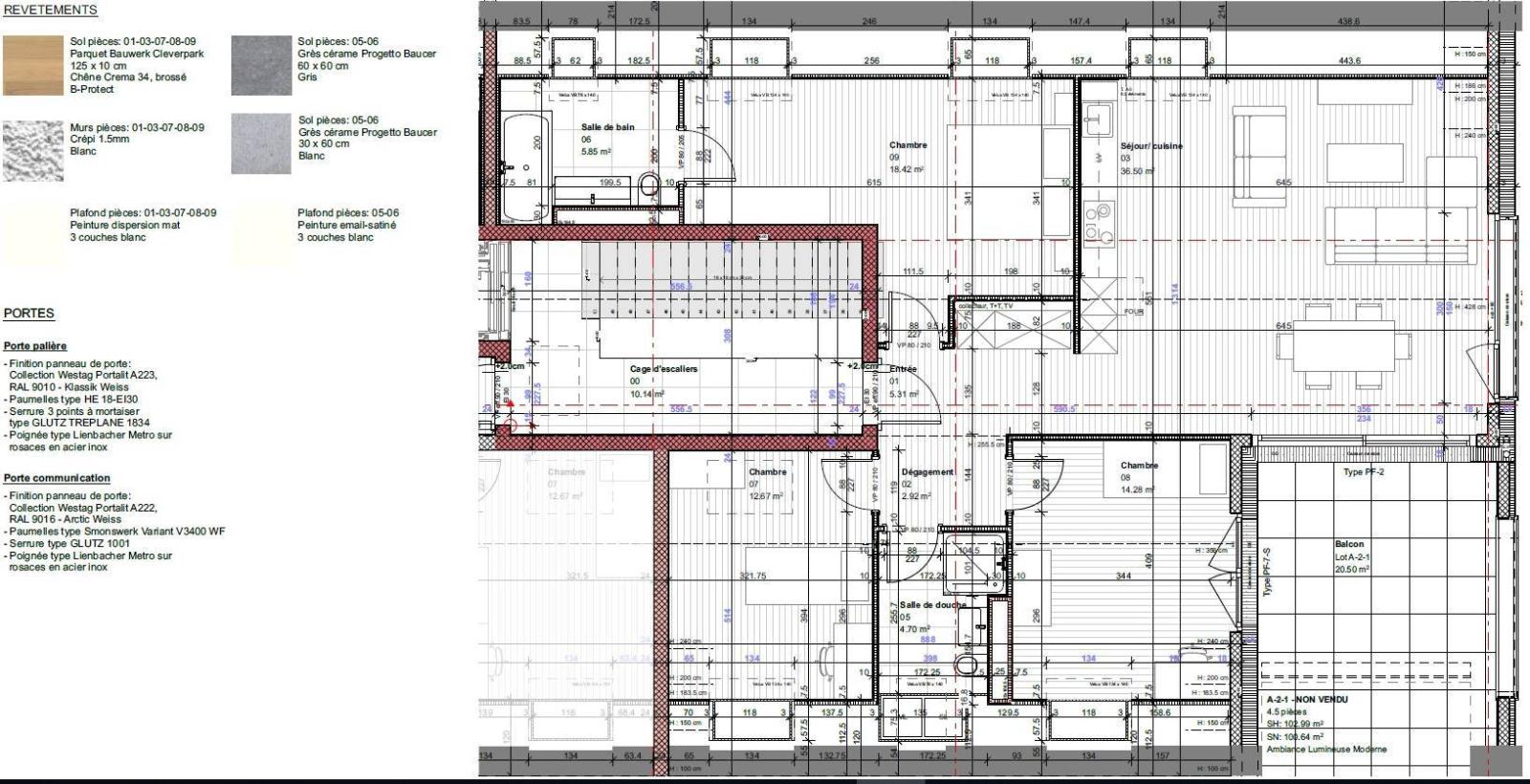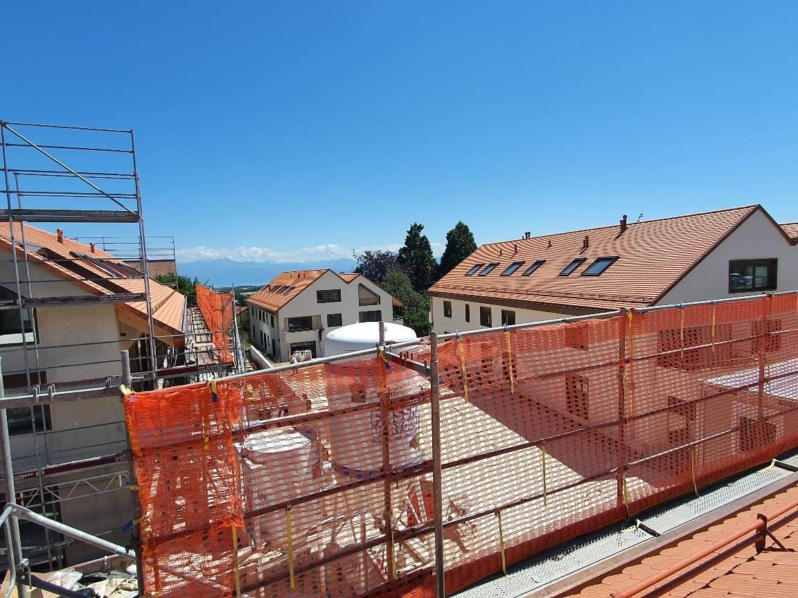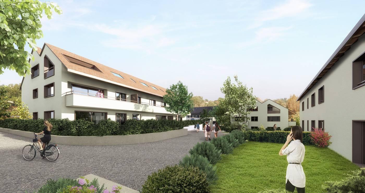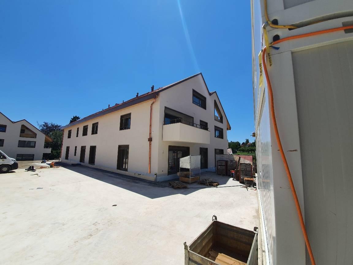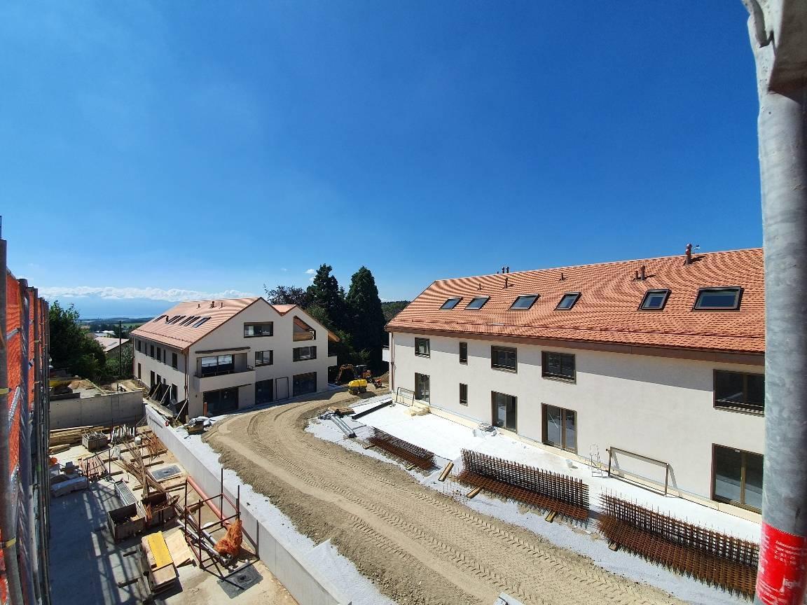 Das Ganze besteht aus vier Gebäuden im menschlichen Maßstab. Die 41 Unterkünfte, vom Studio bis zum 4,5-Zimmer-Apartment, bieten großzügige Volumen sowie großzügige Balkone oder Terrassen und eine Tiefgarage runden das Paket ab (1 Parkplatz und ein Keller für dieses Grundstück).