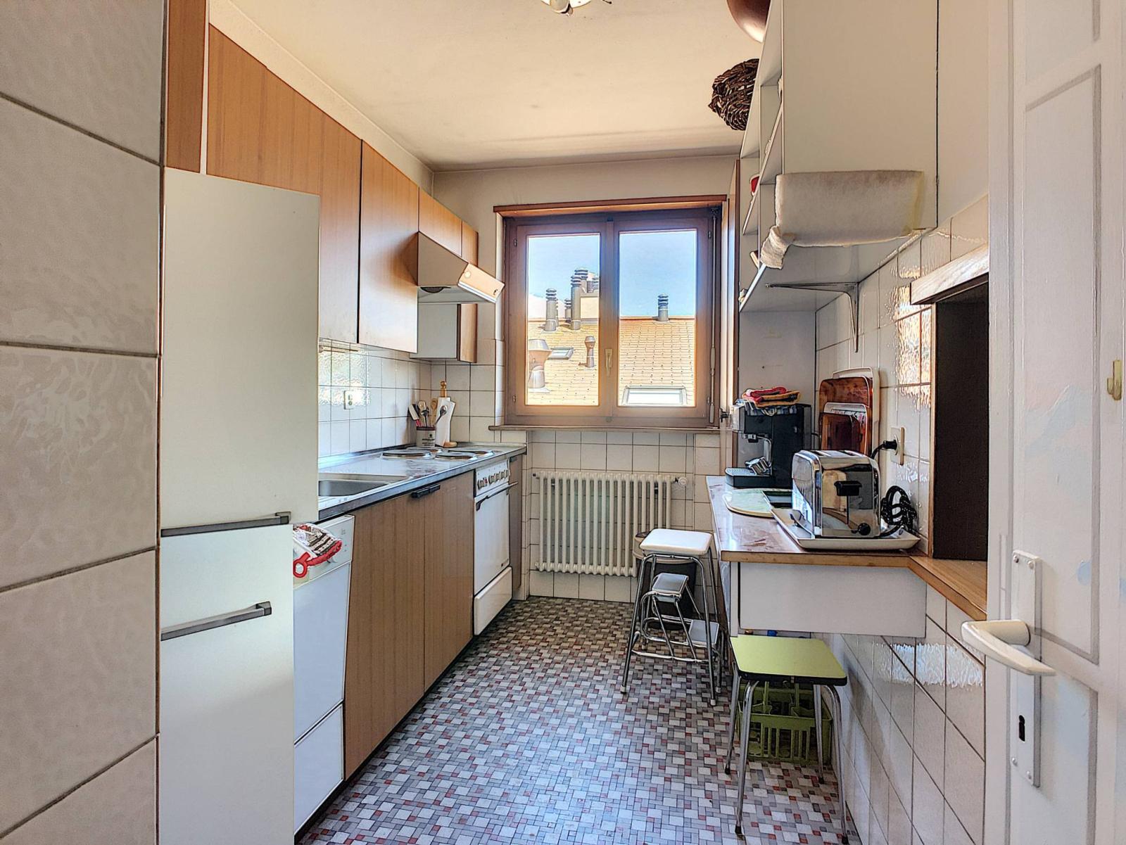 Diese helle und großzügige 5-Zimmer-Wohnung mit herrlichem Blick auf die Alpen bedarf jedoch einer Komplettrenovierung. Parkplatz im Preis inbegriffen.