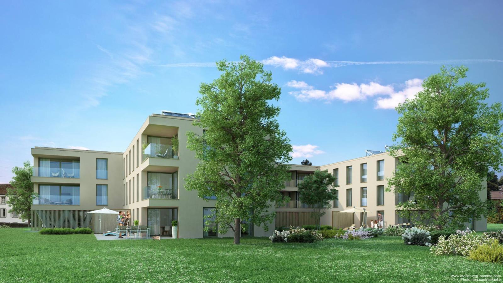 Diese zukünftige Residenz wird aus 2 Gebäuden mit jeweils 10 Wohnungen bestehen. Die angebotenen Typologien reichen von Studios bis zu 4 ½ Zimmern (siehe Option 5 ½ Zimmer).
