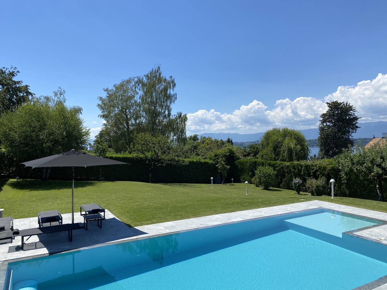 Ein Swimmingpool, eine Garage für 3 Autos und 3 Außenstellplätze runden dieses schöne Ensemble ab.