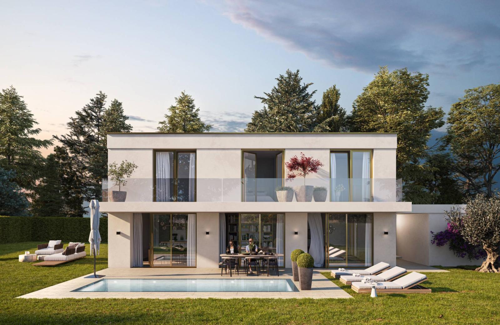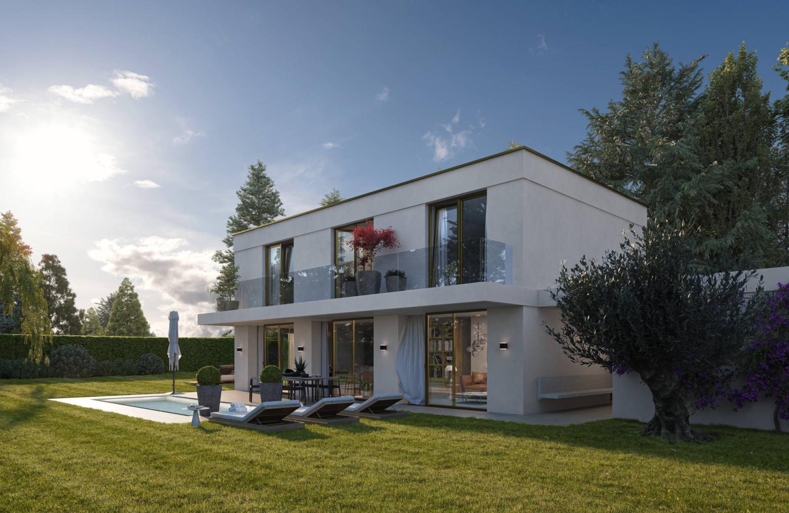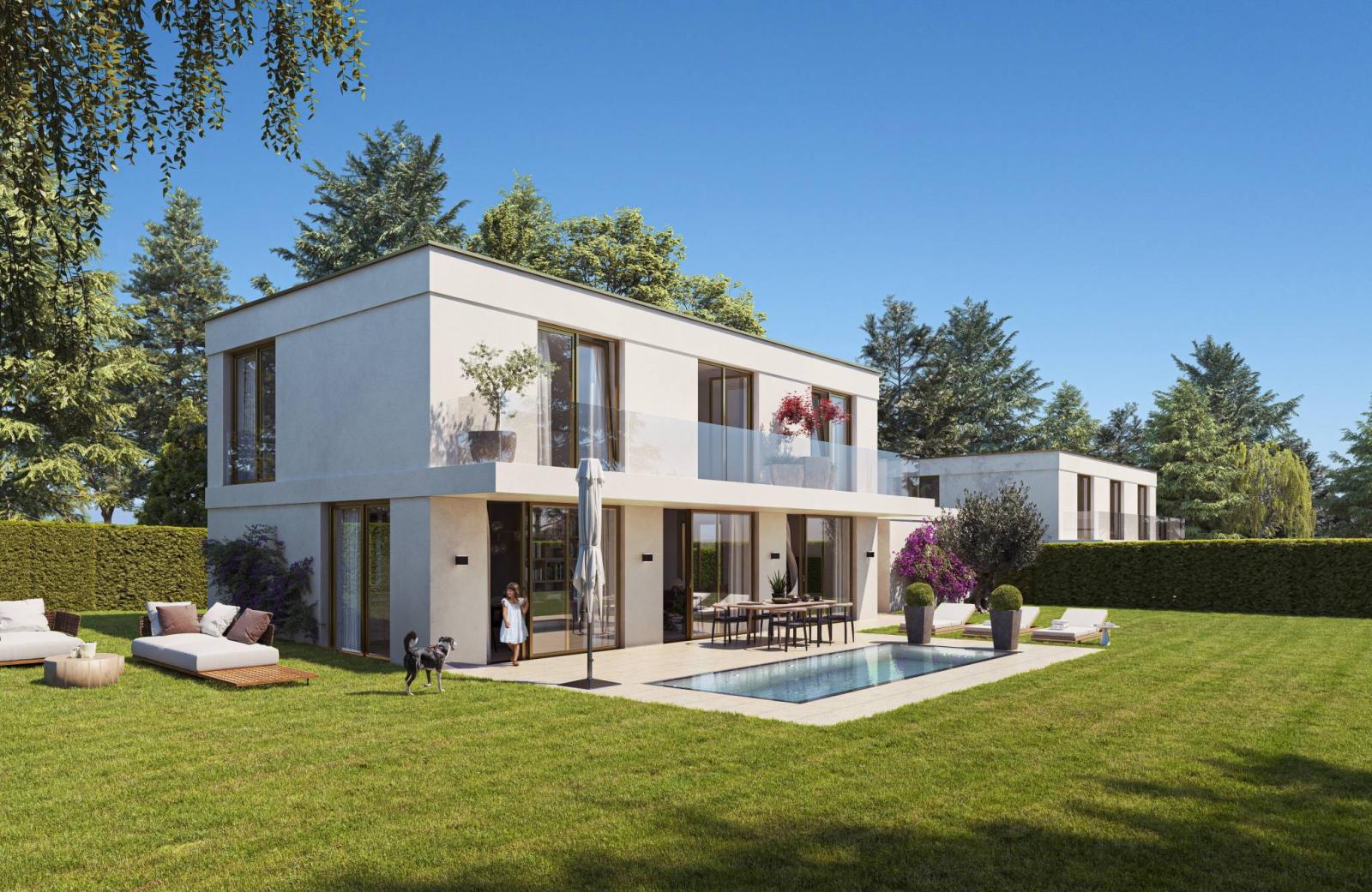 Dieses prächtige Haus mit modernen Linien bietet fast 280 m² Nutzfläche verteilt auf 3 Ebenen.