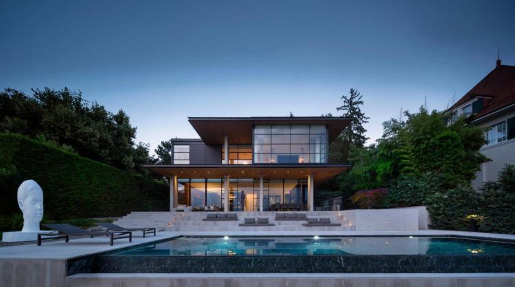 Dieses erhabene neue, moderne Anwesen mit außergewöhnlicher Ausstattung genießt eine ruhige Wohnumgebung mit Panoramablick auf den See.