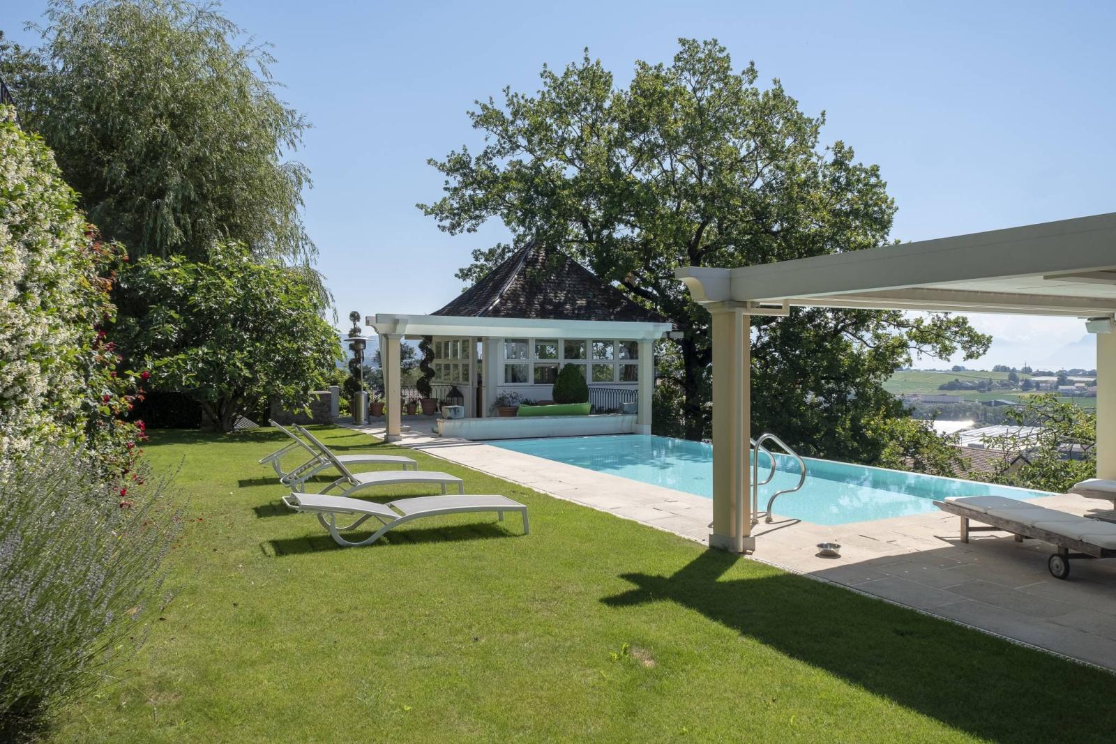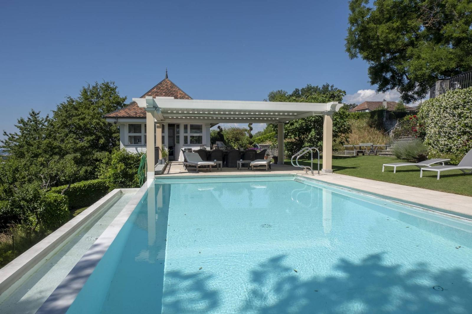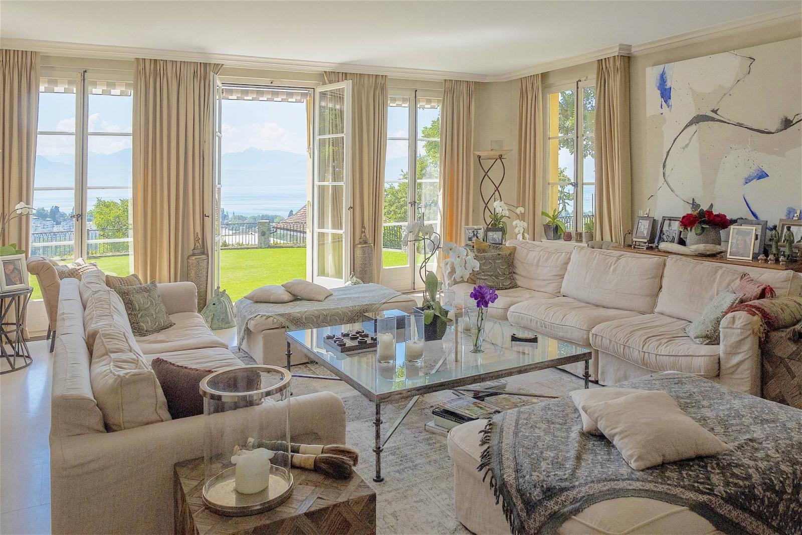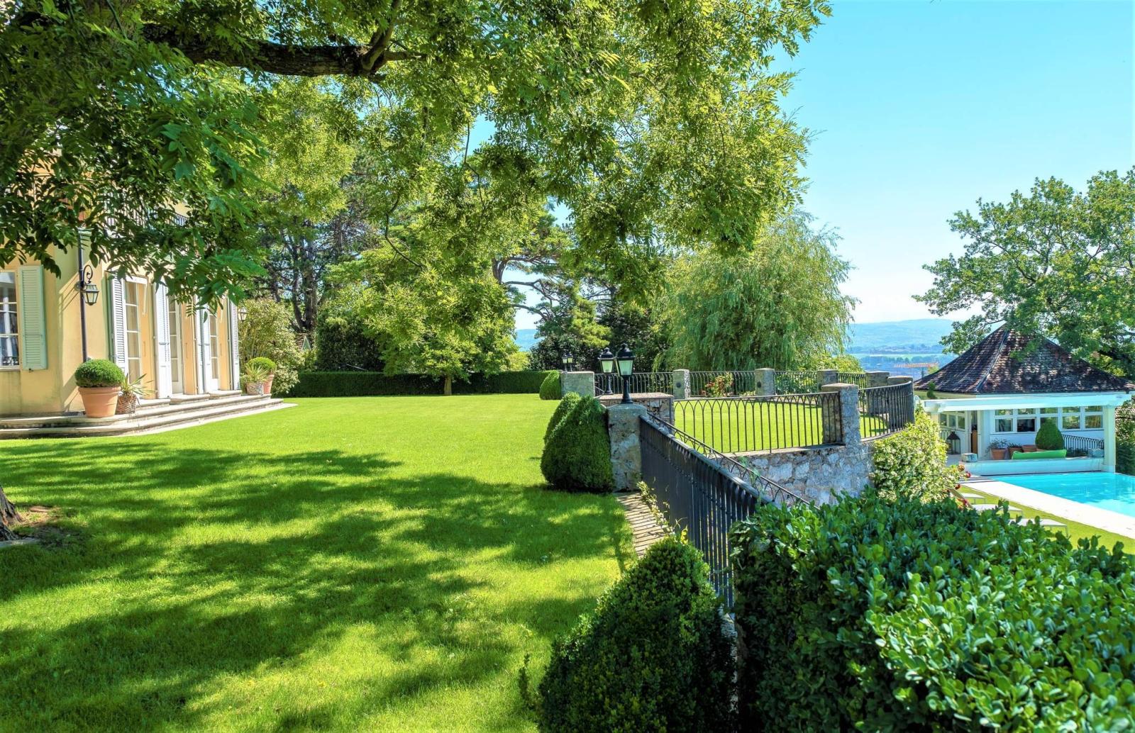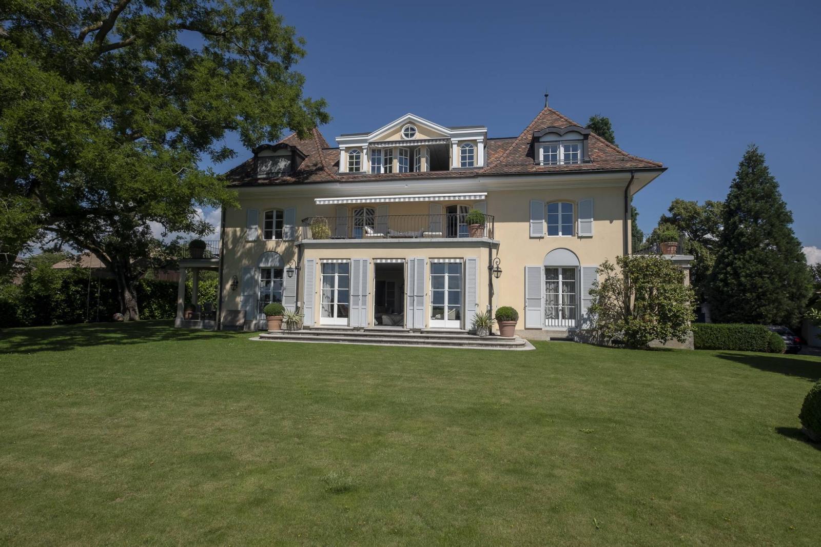 - Ein sehr charmantes und prestigeträchtiges Maison de Maître von ca. 600 m² Wohnfläche, plus 200 m² Keller, modern und in einwandfreiem Zustand, mit großzügigen Räumen mit hohen Decken und viel Licht, aneinandergereiht und mit atemberaubender Aussicht. Ein Familienparadies von ebenso hohem Prestige wie seltener Schönheit, in dem Sie von überall aus die herrliche Aussicht auf den Genfersee und den Mont Blanc genießen können.
