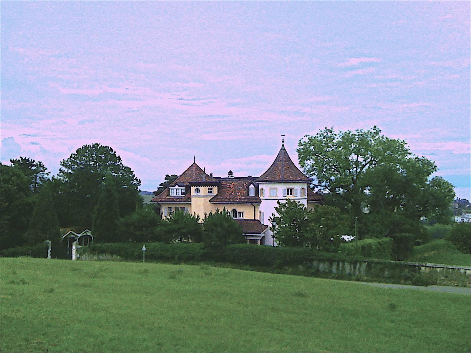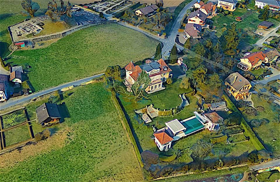 - „Le Crêt Noé“ wurde 1951 für einen Waadtländer Bankier-Maler erbaut und von Nicolas Büchler, dem Architekten und jetzigen Eigentümer, zweimal erweitert. Er fügte 1994 die Eingangspergola im Norden, das große Wohnzimmer im Süden und das sechseckige hinzu Turm im Westen sowie die Schwimmbadpromenade mit ihren Sommerpavillons, der Servicewohnung und den beiden Springbrunnen des Gewächshauses, und dann im Jahr 2006 im Wesentlichen das 2. Obergeschoss mit seinem großen Dach, das heute durch zwei Punkte in einem Dachgeschossrahmen begrenzt ist Osten und Westen.