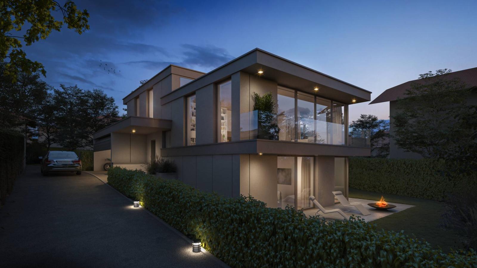 Das Projekt Perles d'Anières liegt auf den Höhen der Stadt in einer privaten Sackgasse und besteht aus dem Bau von 2 luxuriösen Einzelvillen.