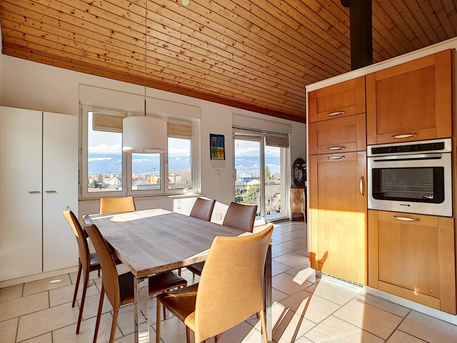 Dieses angenehme Reihenhaus befindet sich in einem Wohngebiet und profitiert aufgrund seiner Nähe zum Stadtzentrum von Yverdon-les-Bains von einer privilegierten Lage, während es dank seiner dominanten Lage eine klare Aussicht genießt.