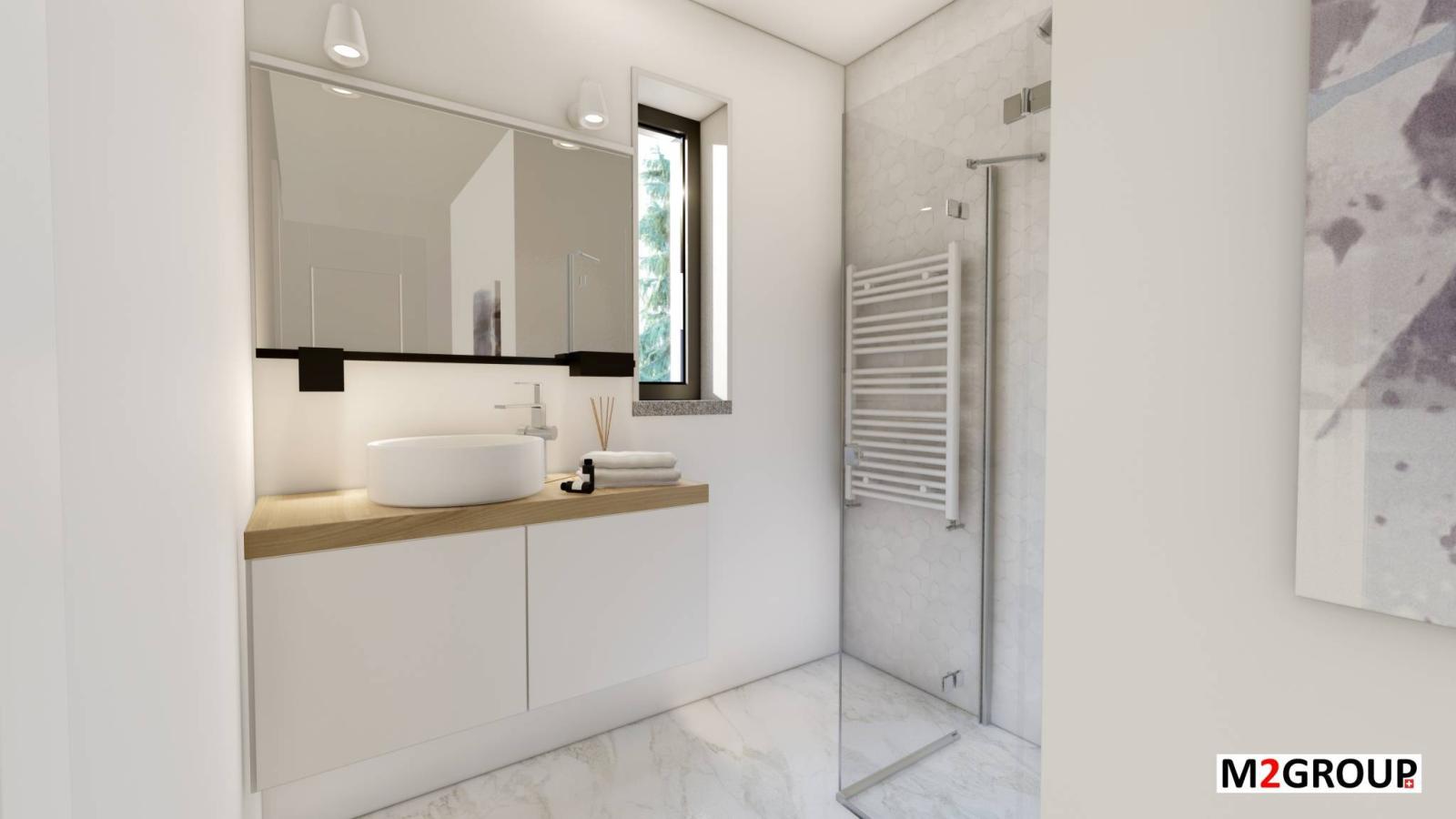 Das Haus wird die THPE-Kriterien (sehr hohe Energieeffizienz) erfüllen. Es wird von Photovoltaikmodulen, einer Wärmepumpe, Doppelverglasung und elektrischen Jalousien profitieren.