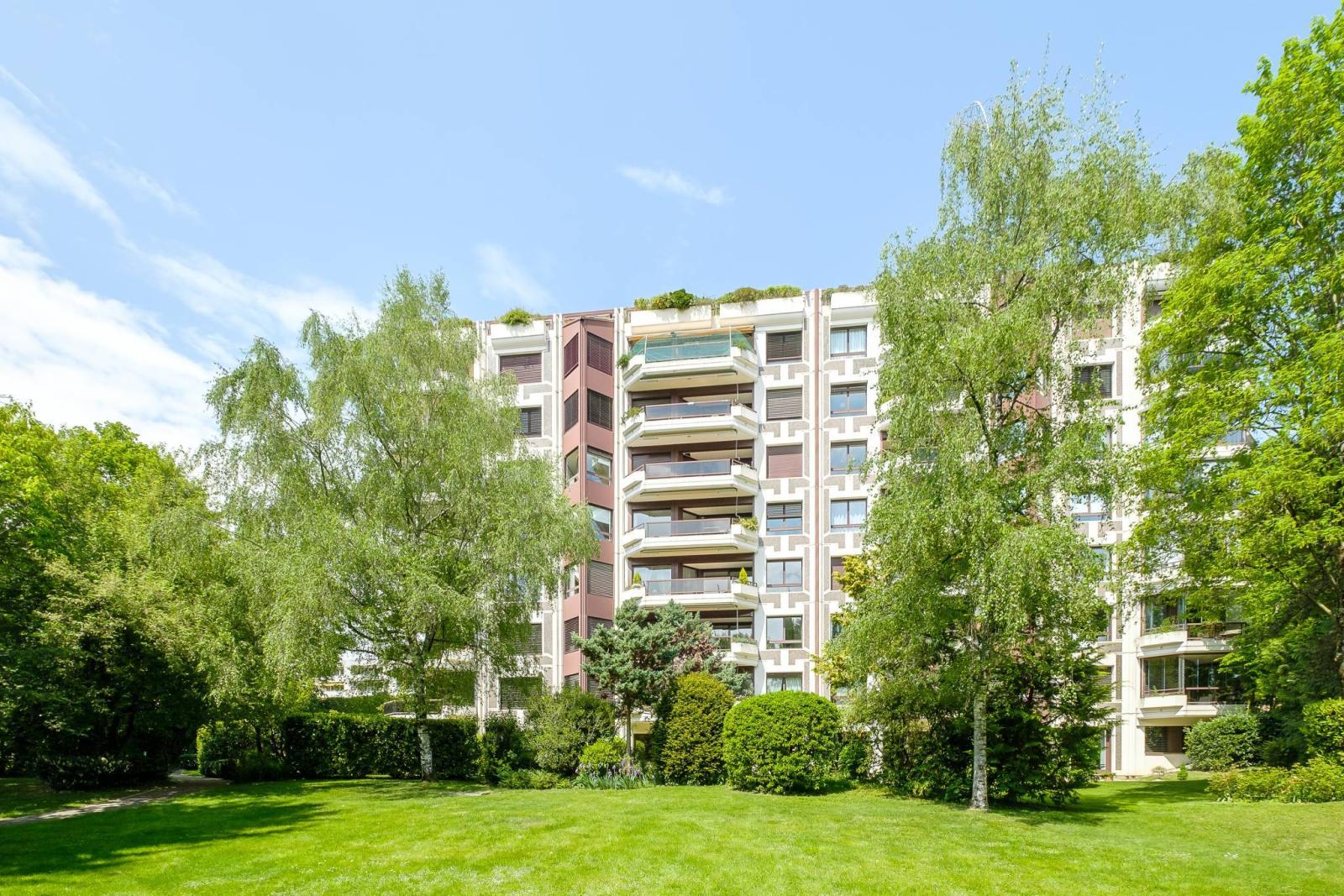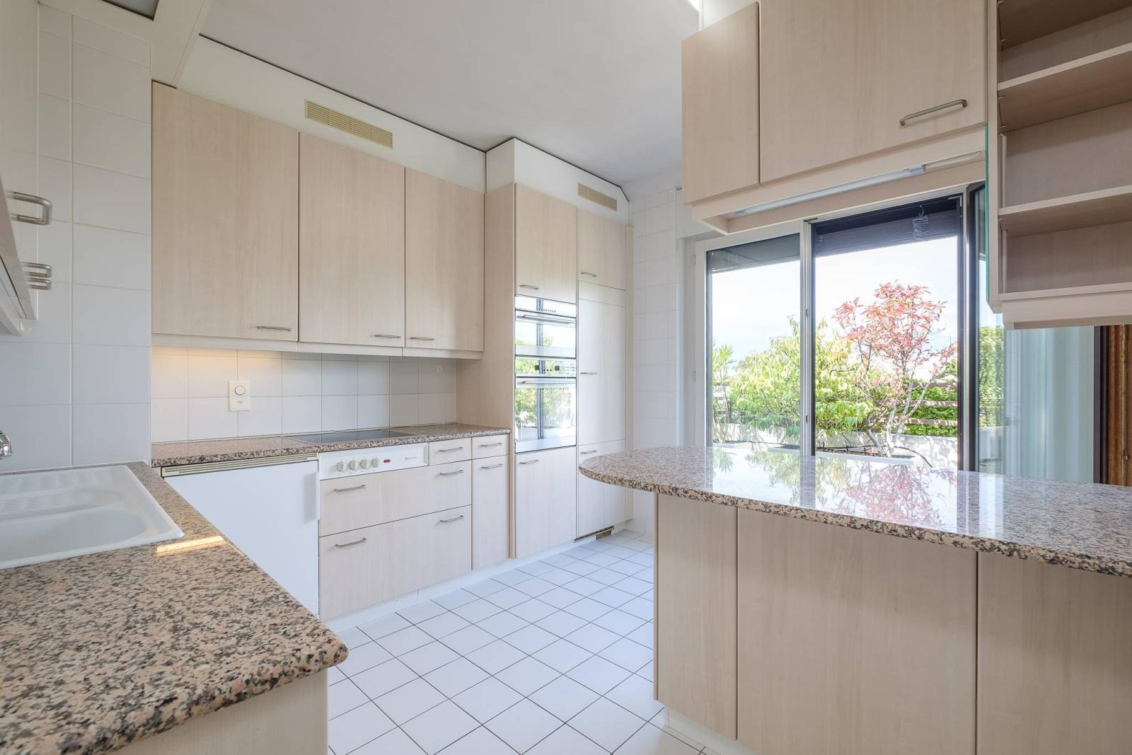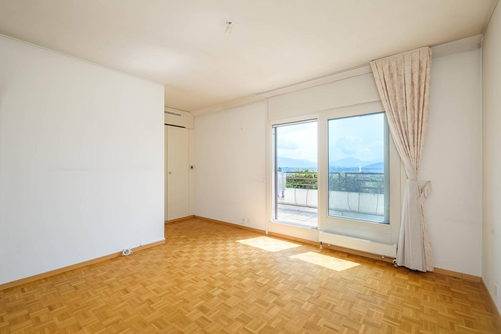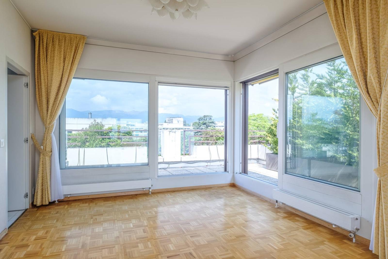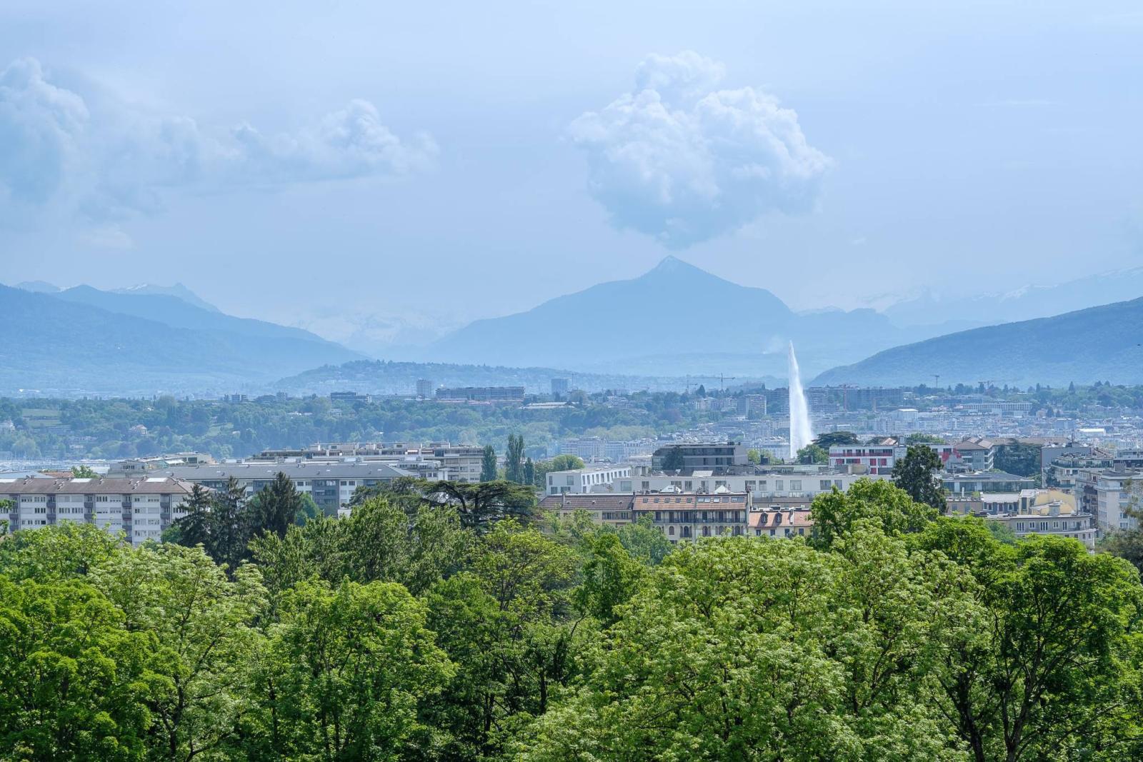 Die Wohnung ist hell und mit Giebeln ausgestattet und bietet einen atemberaubenden Panoramablick auf die Stadt, die Alpen und den Jet d'eau.