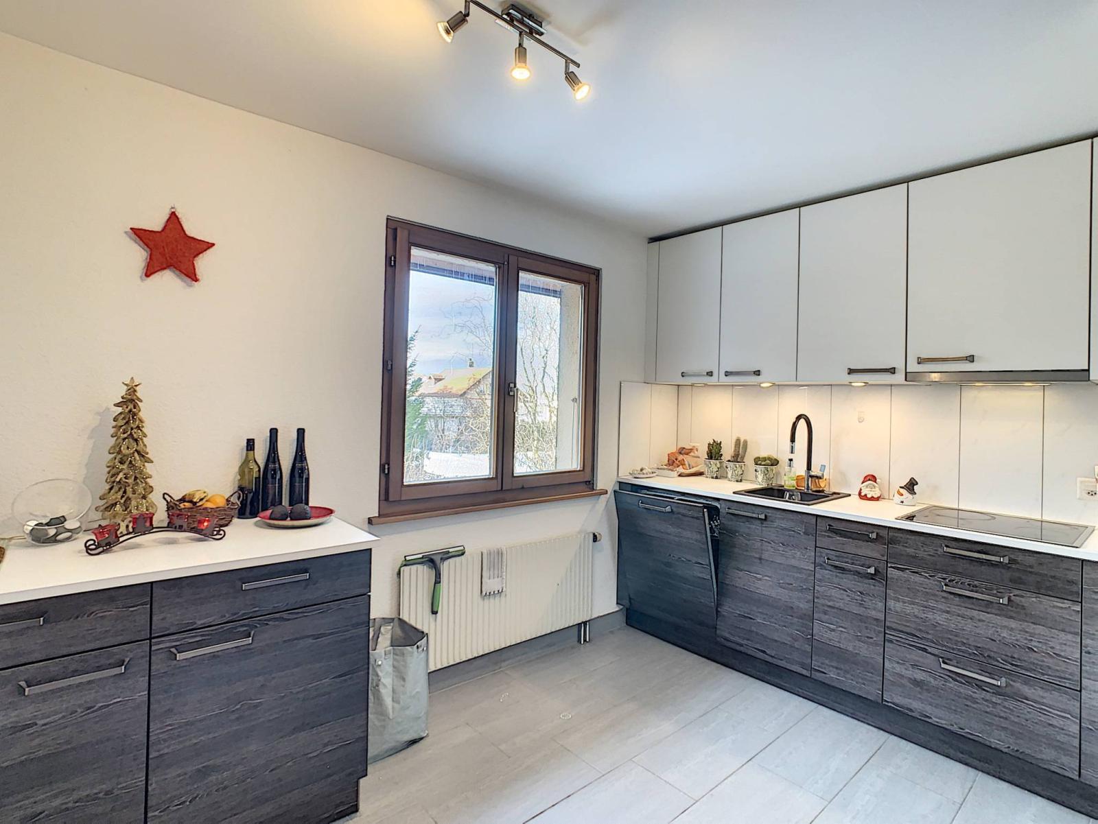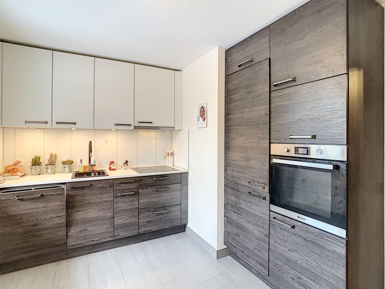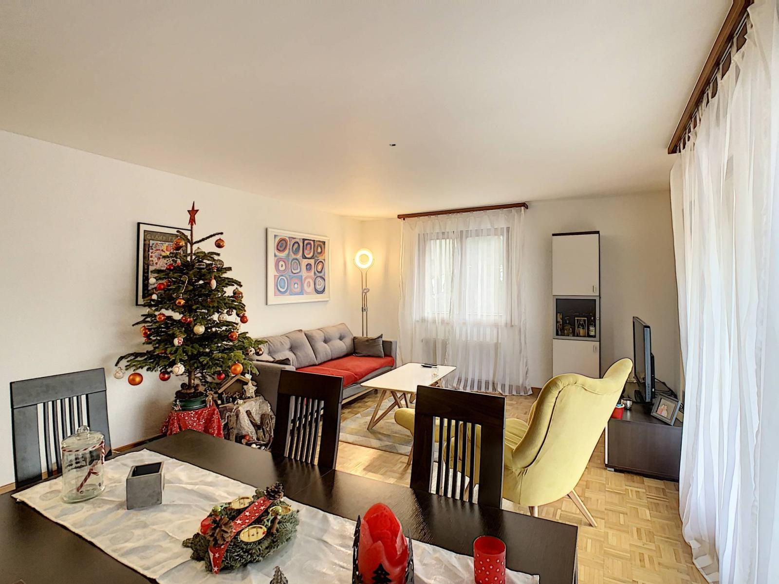 Die 1989 erbaute und 2018 mit hochwertigen Materialien renovierte großzügige 3,5-Zimmer-Wohnung verfügt über eine Gesamtwohnfläche von 81,1 m², ergänzt durch einen 8 m² großen Balkon, wodurch sich die gewichtete Wohnfläche auf 86,1 m² beläuft. Es befindet sich im 1. Stock eines PPE-Gebäudes mit 6 Wohnungen.