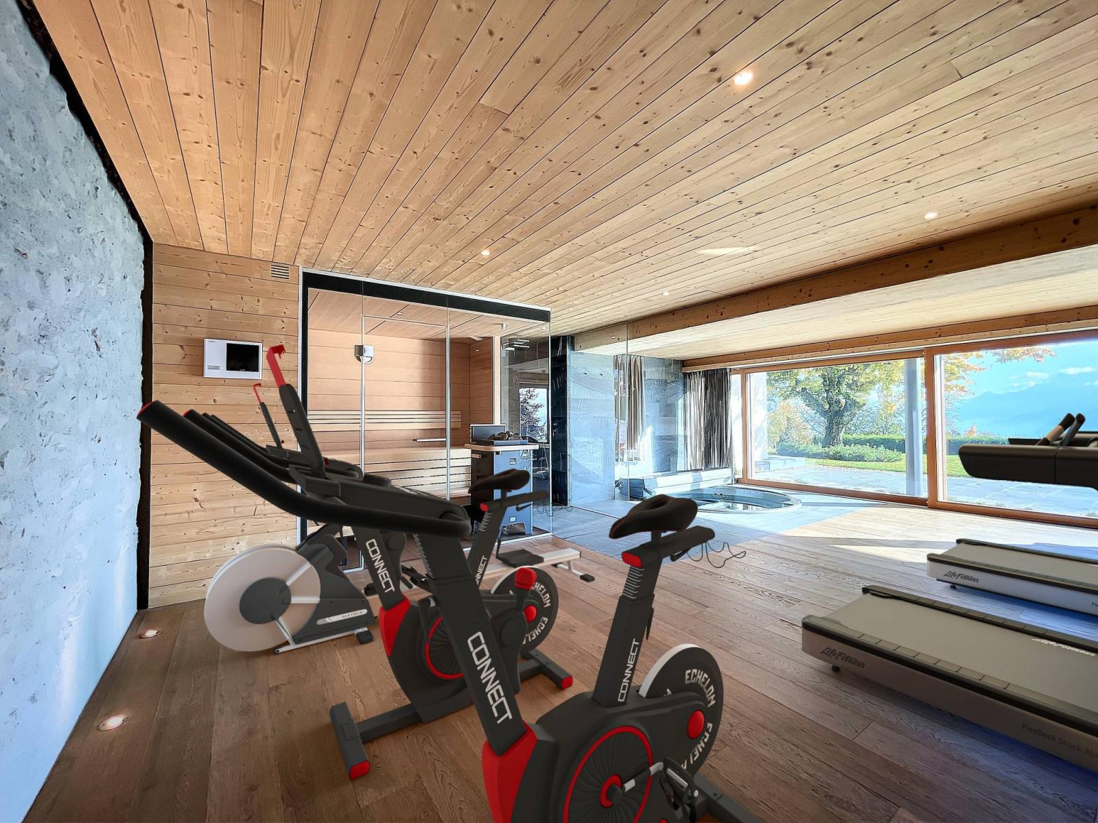 Ein Ruheraum mit Sauna/Jacuzzi, ein Keller, Außenstellplätze sowie eine Garage für mindestens 3 Fahrzeuge runden den Komfort dieser seltenen Immobilie ab.