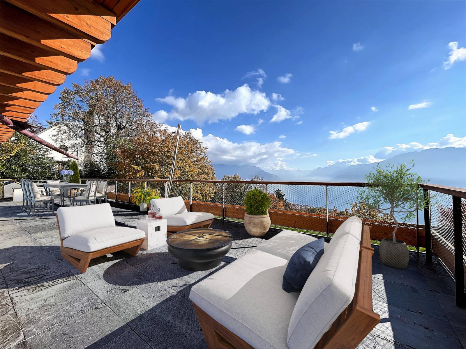 Prächtiges Chalet mit 10 Zimmern und ca. 405 m² Wohnfläche in außergewöhnlicher, einzigartiger und privater Lage mit spektakulärem Blick auf den Genfersee und die Berge.