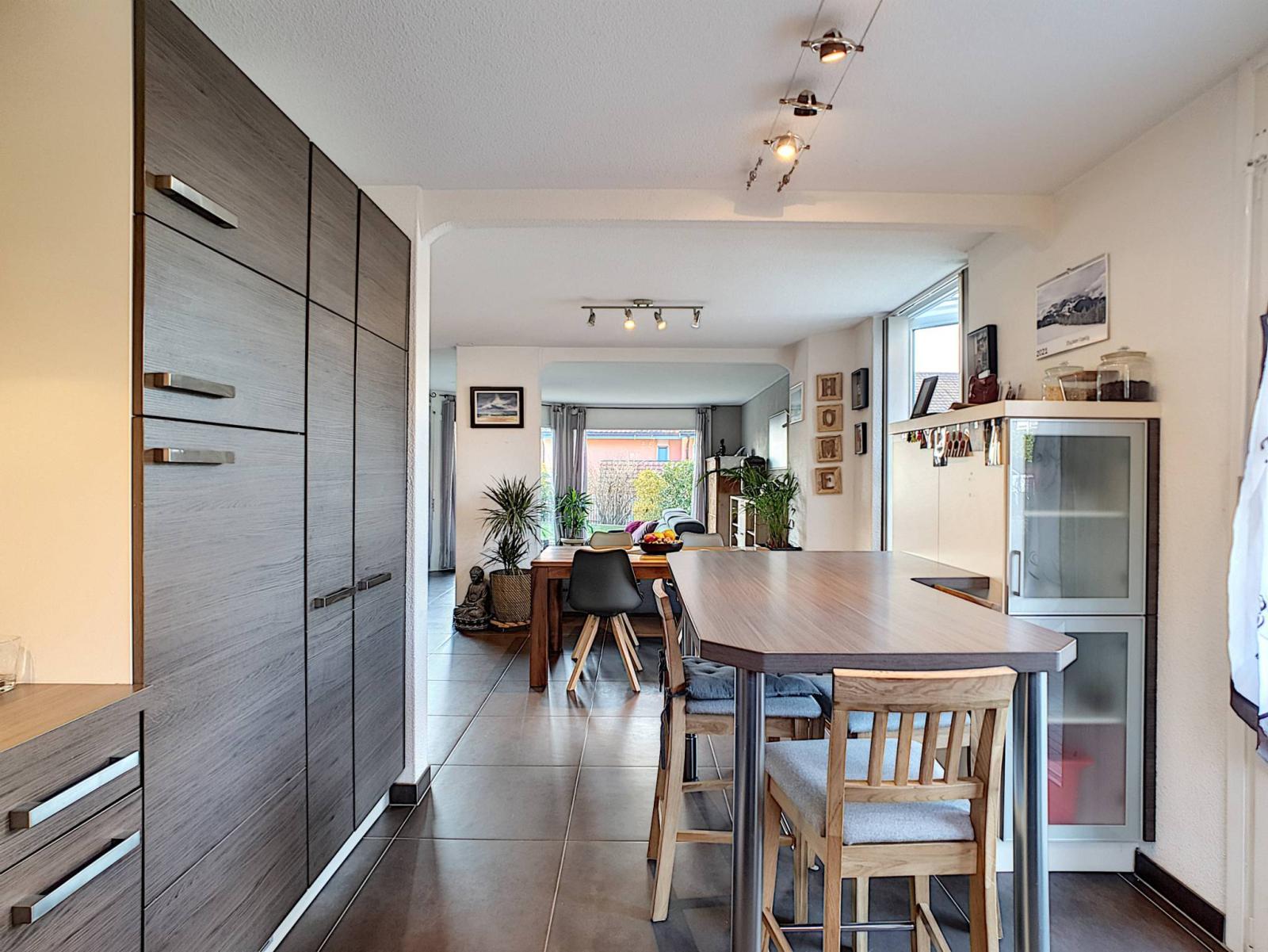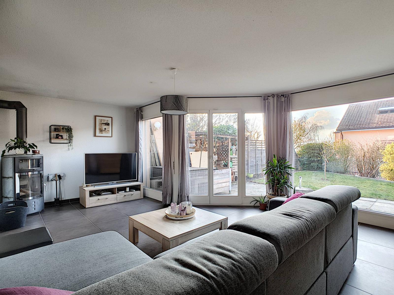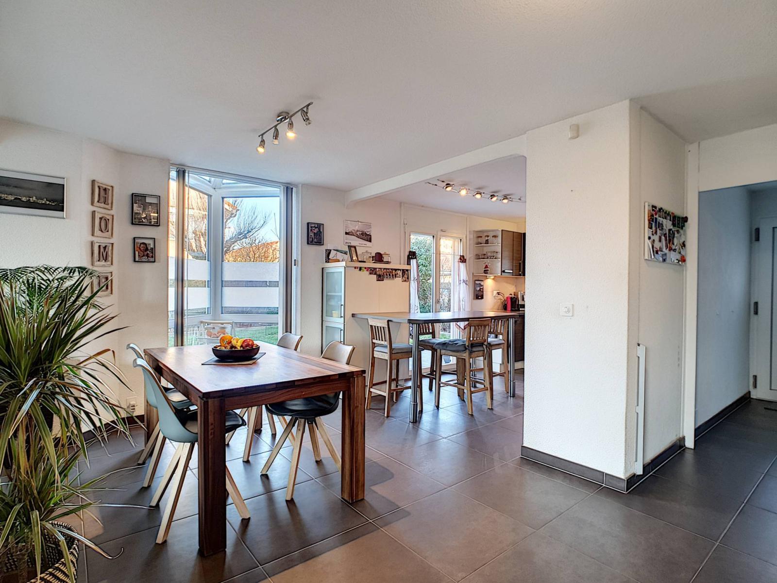 Diese Doppelhaushälfte mit 5,5 Zimmern wurde auf einem Grundstück von 354 m² erbaut und erstreckt sich über 4 Ebenen mit einem Gesamtvolumen von 673 m³. Es bietet auch einen 279 m² großen Garten, der gut angelegt ist und wenig Pflege erfordert.