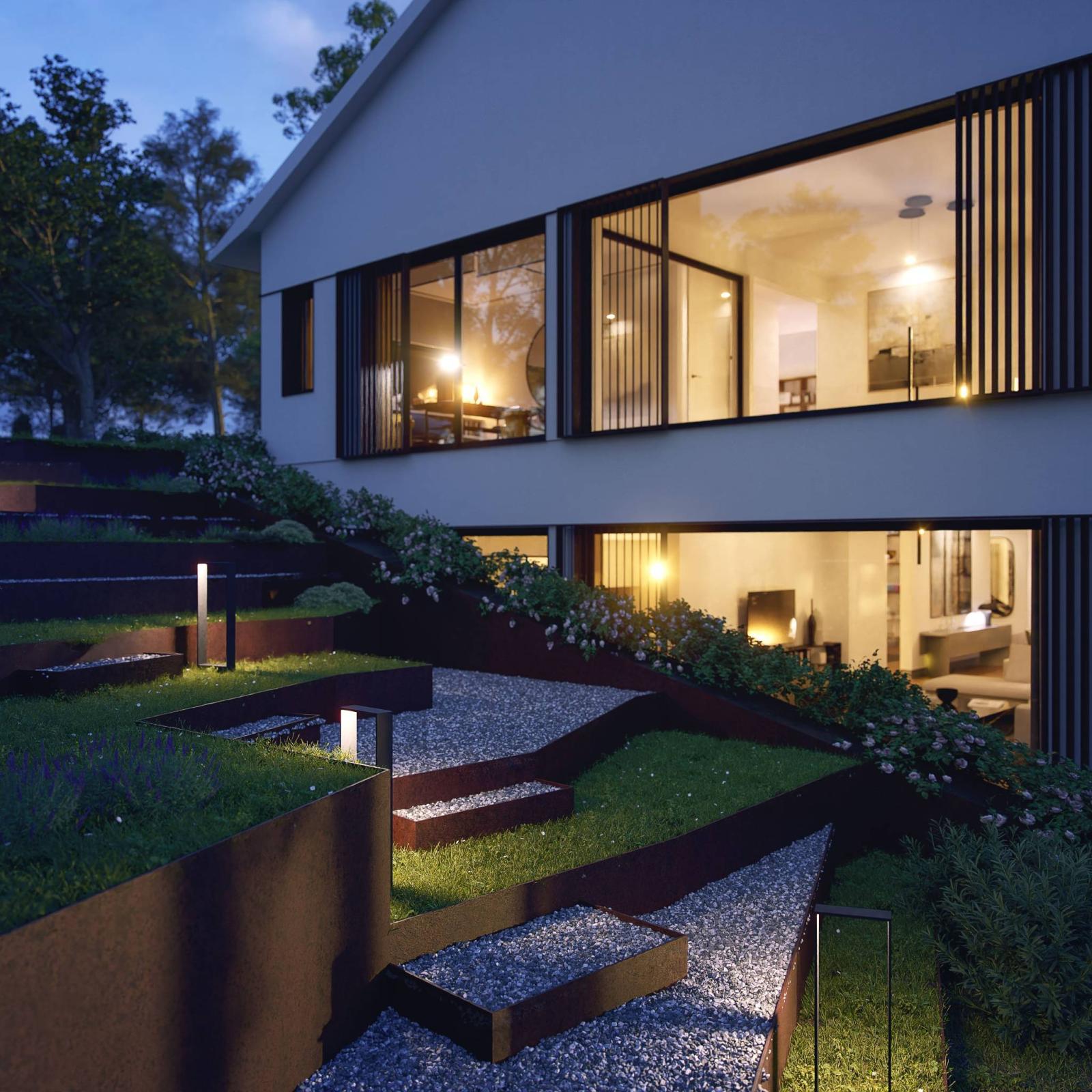 Im Außenbereich runden eine geschlossene Garage mit 2 Stellplätzen sowie Außenstellplätze das Paket ab.