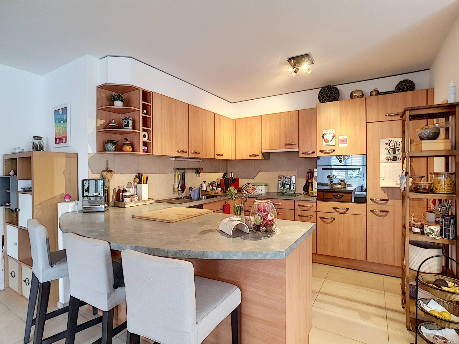 Ideal gelegen in einem Viertel, in dem es sich gut leben lässt, nur einen Steinwurf vom Stadtzentrum entfernt, wird Sie diese prächtige 4,5-Zimmer-Wohnung im Erdgeschoss eines 2006 erbauten Wohnhauses bezaubern. Diese geräumige Unterkunft verfügt über viel Licht und besteht aus 4,5 Zimmern, darunter 3 Schlafzimmern, auf einer Ebene, mit einer Gesamtwohnfläche von ca. 125 m², einer überdachten Terrasse und einem privaten Garten.