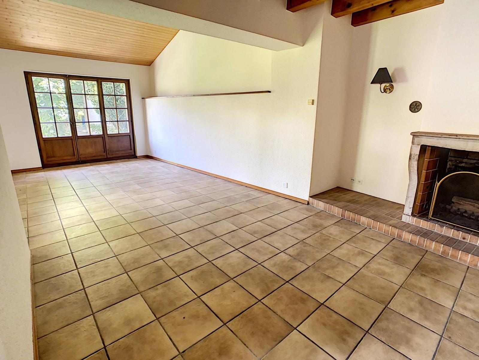 Im Erdgeschoss befinden sich eine Einbauküche, ein Esszimmer, ein Gäste-WC und ein gemütliches Wohnzimmer mit hohen Decken und Kamin. Auf dieser Ebene befindet sich auch ein Abstellraum.