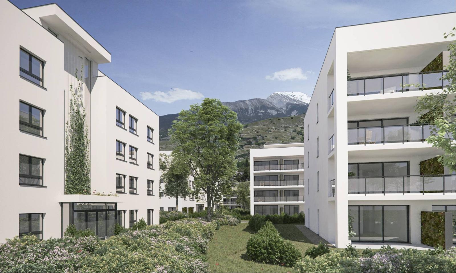 Das Öko-Viertel „Greenparc“ liegt im Champsec-Viertel von Sitten, in der Nähe aller Annehmlichkeiten und öffentlichen Verkehrsmittel.
