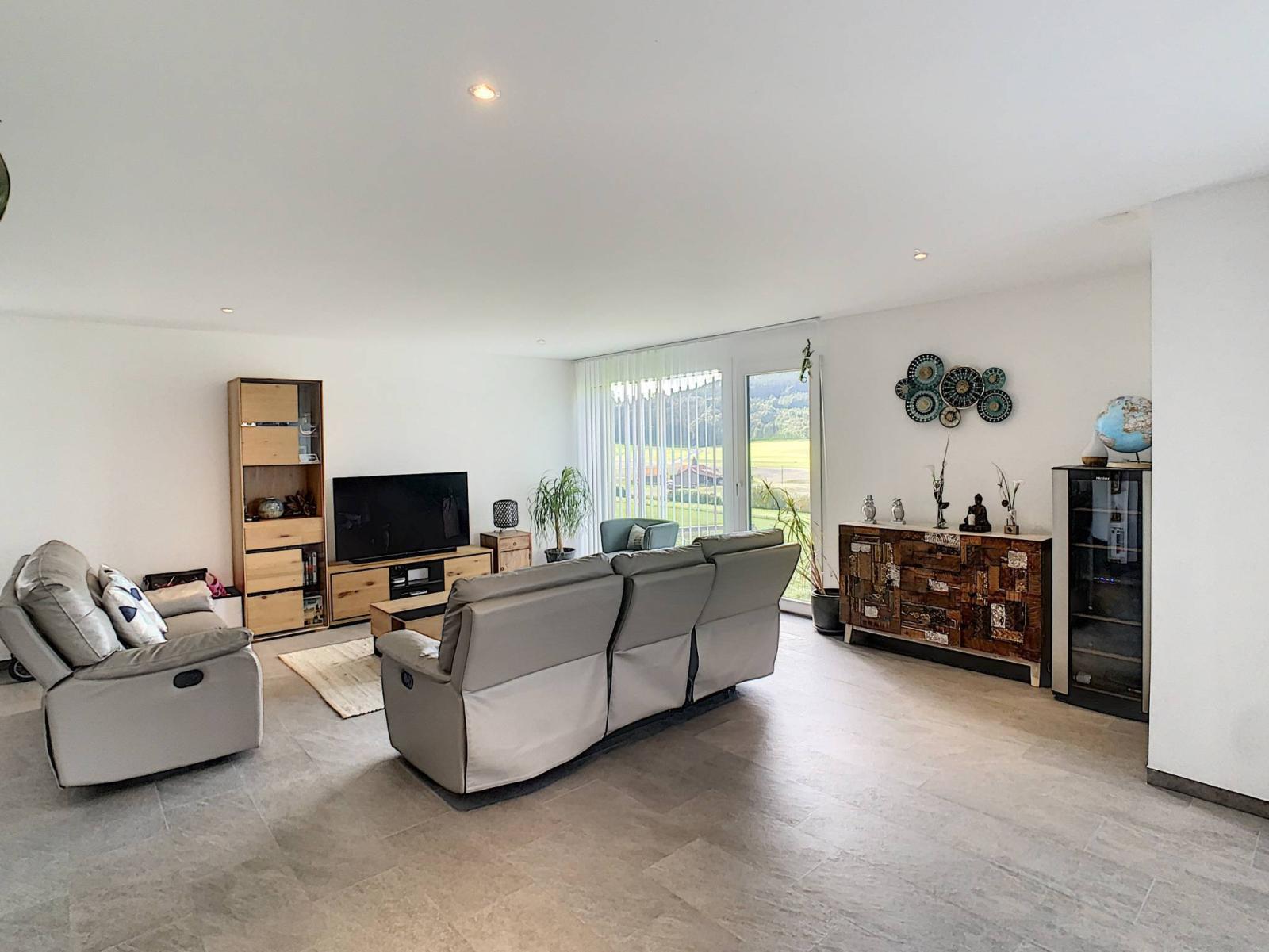 Diese charmante, moderne Villa aus dem Jahr 2016 in der Stadt Gibloux ist nach Süden ausgerichtet und bietet eine freie Aussicht. Sie profitiert von einer ruhigen und grünen Umgebung am Rande landwirtschaftlicher Flächen. Es bietet 206 m² Nutzfläche inklusive 161 m² Wohnfläche, verteilt auf 2 Ebenen. Auf einem wunderschönen Grundstück von 648 m² gelegen, wird es Sie mit seiner Helligkeit und seinem Volumen verführen.