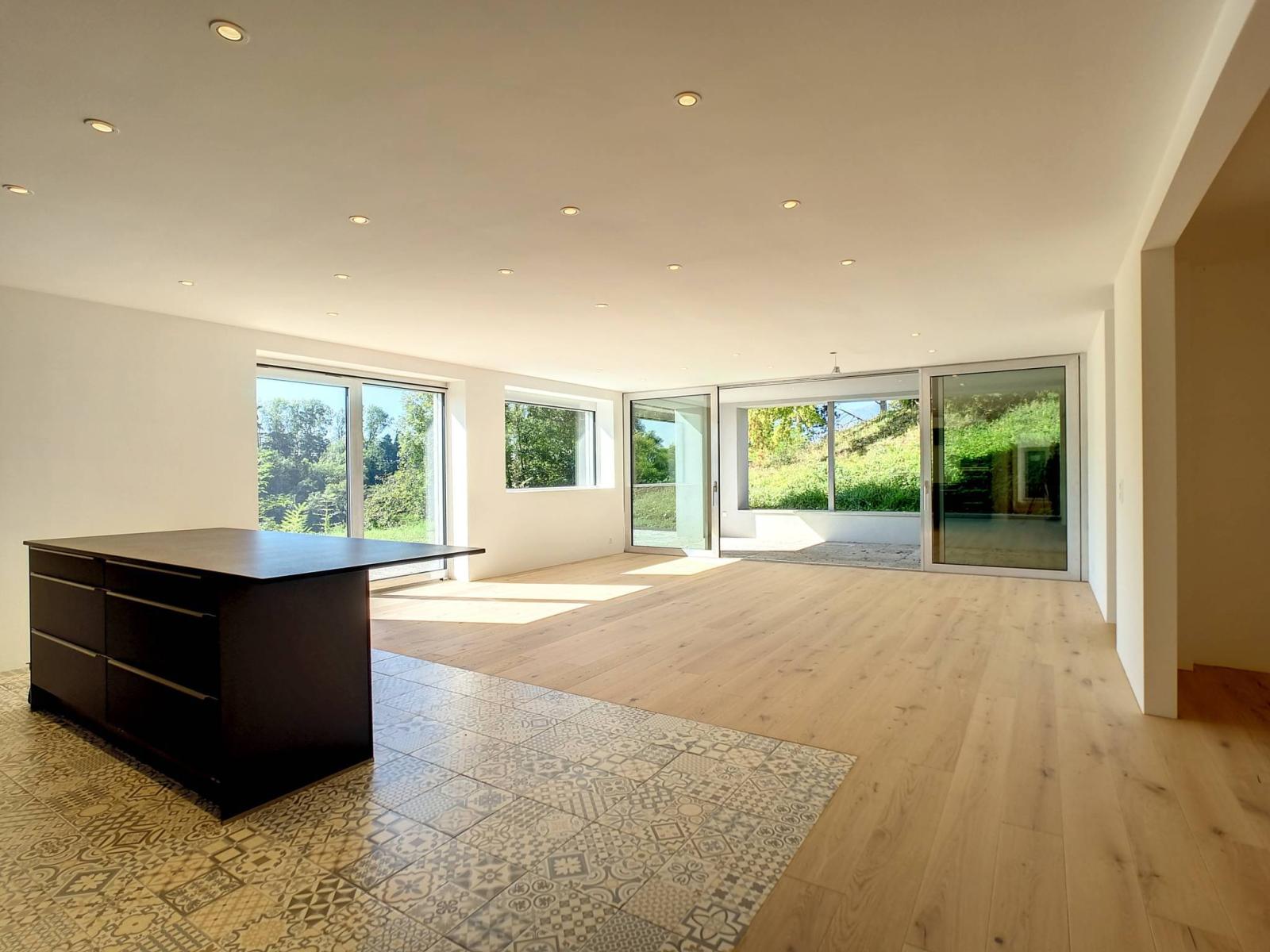 Eine zweite Terrasse an der Ecke der gesamten Wohnung bietet Blick auf den nach Süden ausgerichteten Garten und ermöglicht es Ihnen, außer Sichtweite die entspannendste Entspannung zwischen Vogelgezwitscher und Blick auf den umliegenden Wald zu genießen.