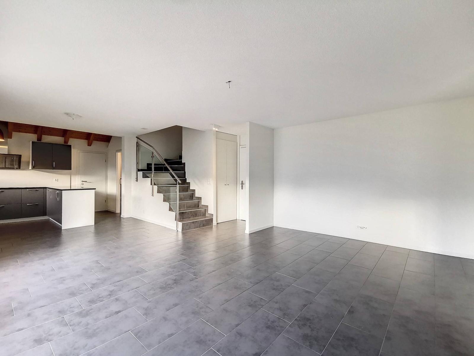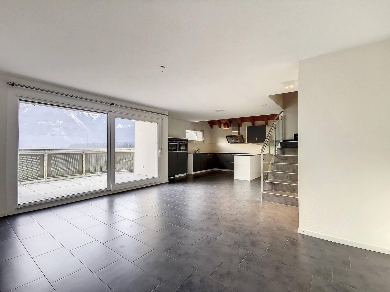 Diese 4,5-Zimmer-Maisonette-Wohnung mit einer Wohnfläche von 177,30 m² befindet sich im Dachgeschoss und im Dachgeschoss des Gebäudes B der PPE „Les Blés d'Or“ im charmanten Dorf Versvey, Gemeinde Yvorne.