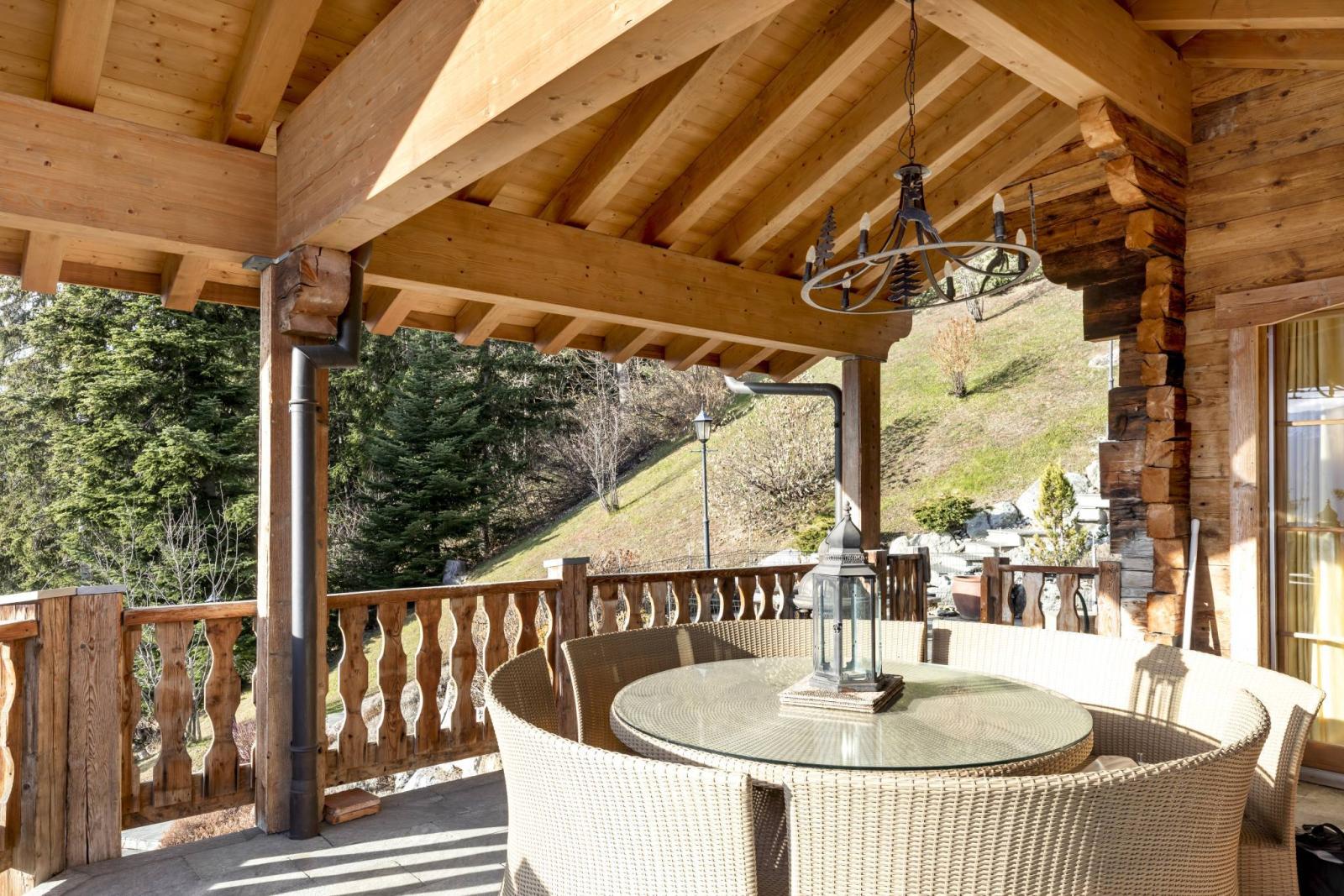 Auf der großen Terrasse von ca. 79 m², die an das gesamte Chalet grenzt, können Sie es in vollen Zügen genießen.