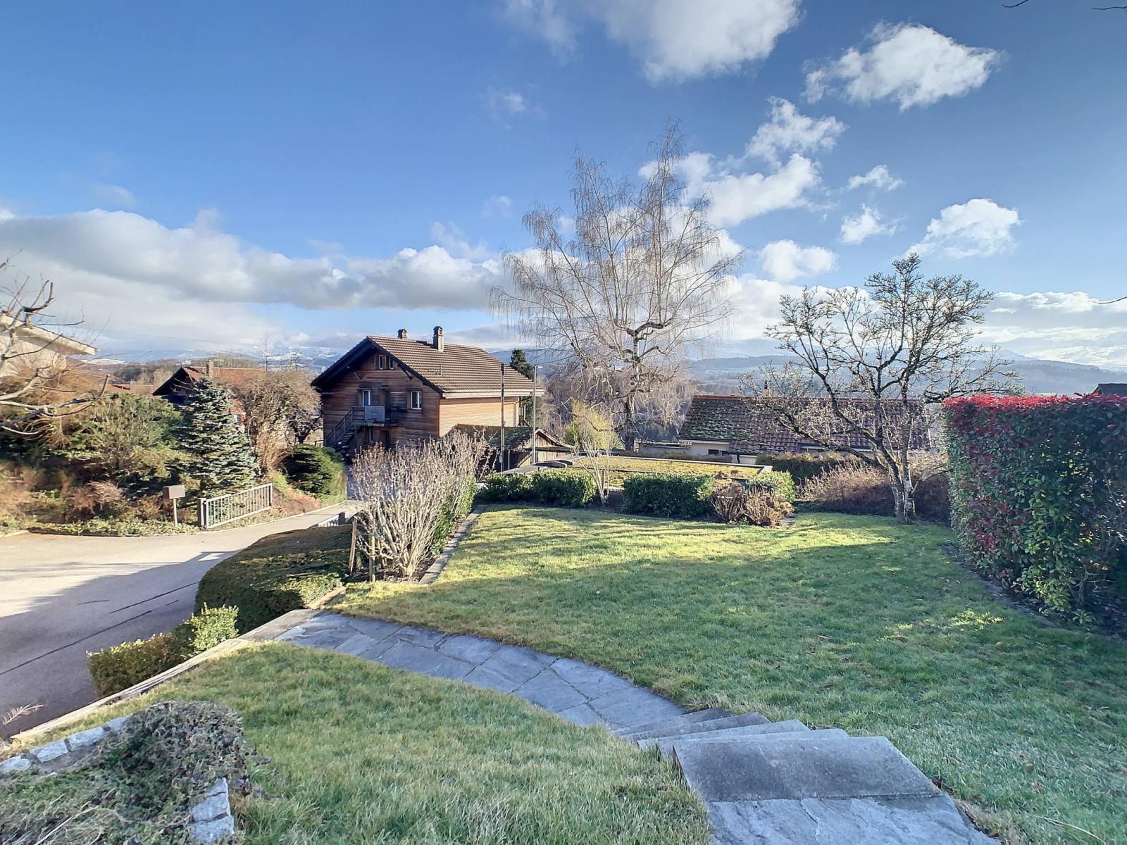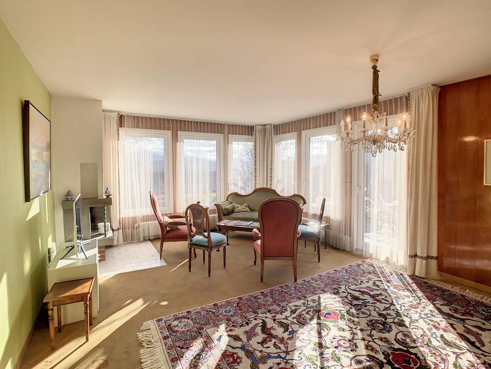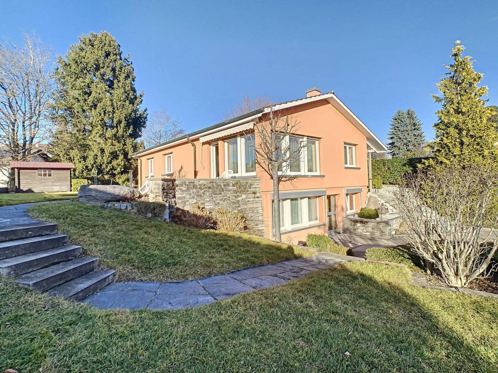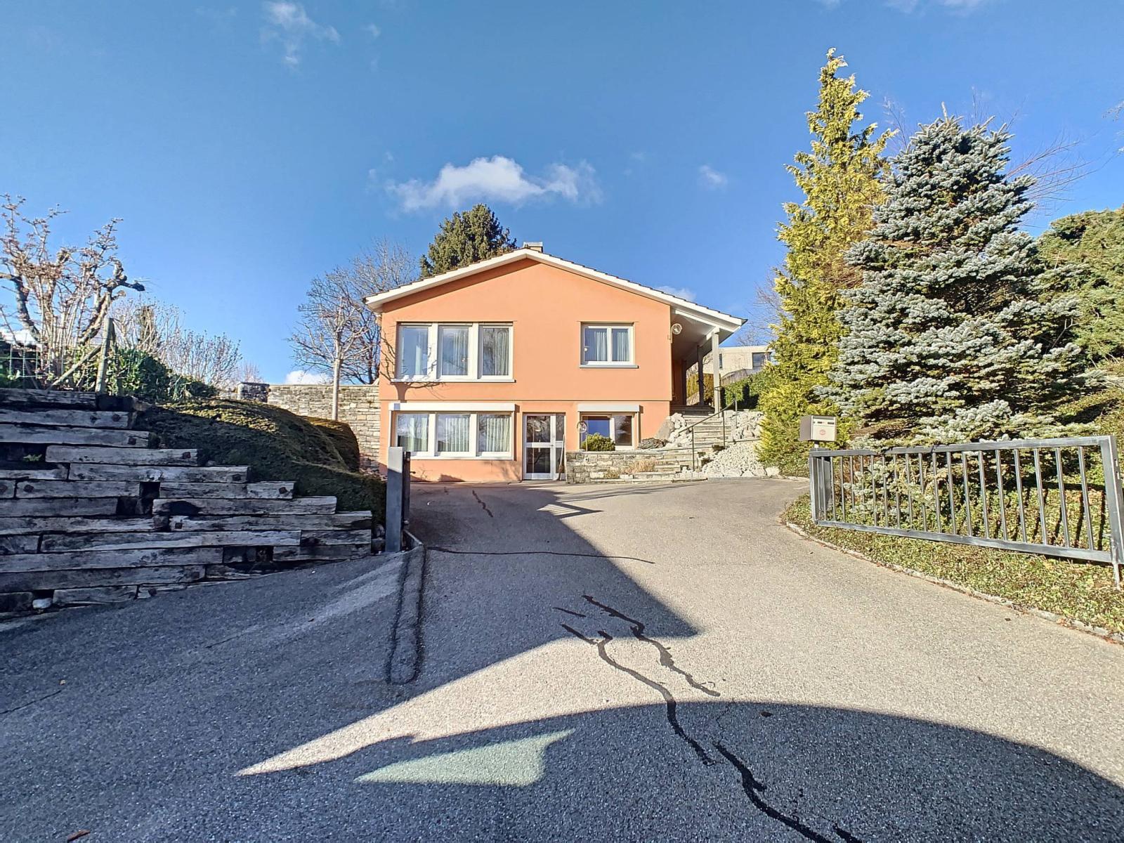 Diese 1964 erbaute freistehende Villa mit 6,5 Zimmern befindet sich auf einem 1.007 m² großen Grundstück in einer Sackgasse einer ruhigen Wohngegend.