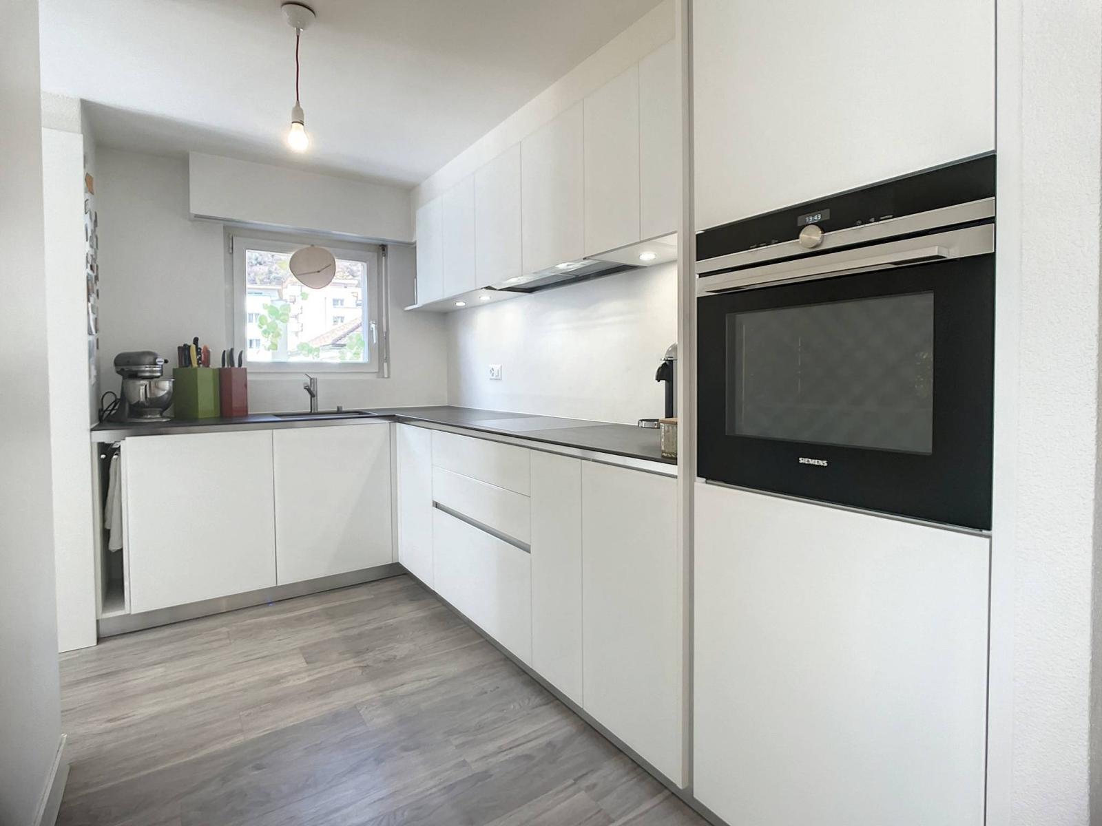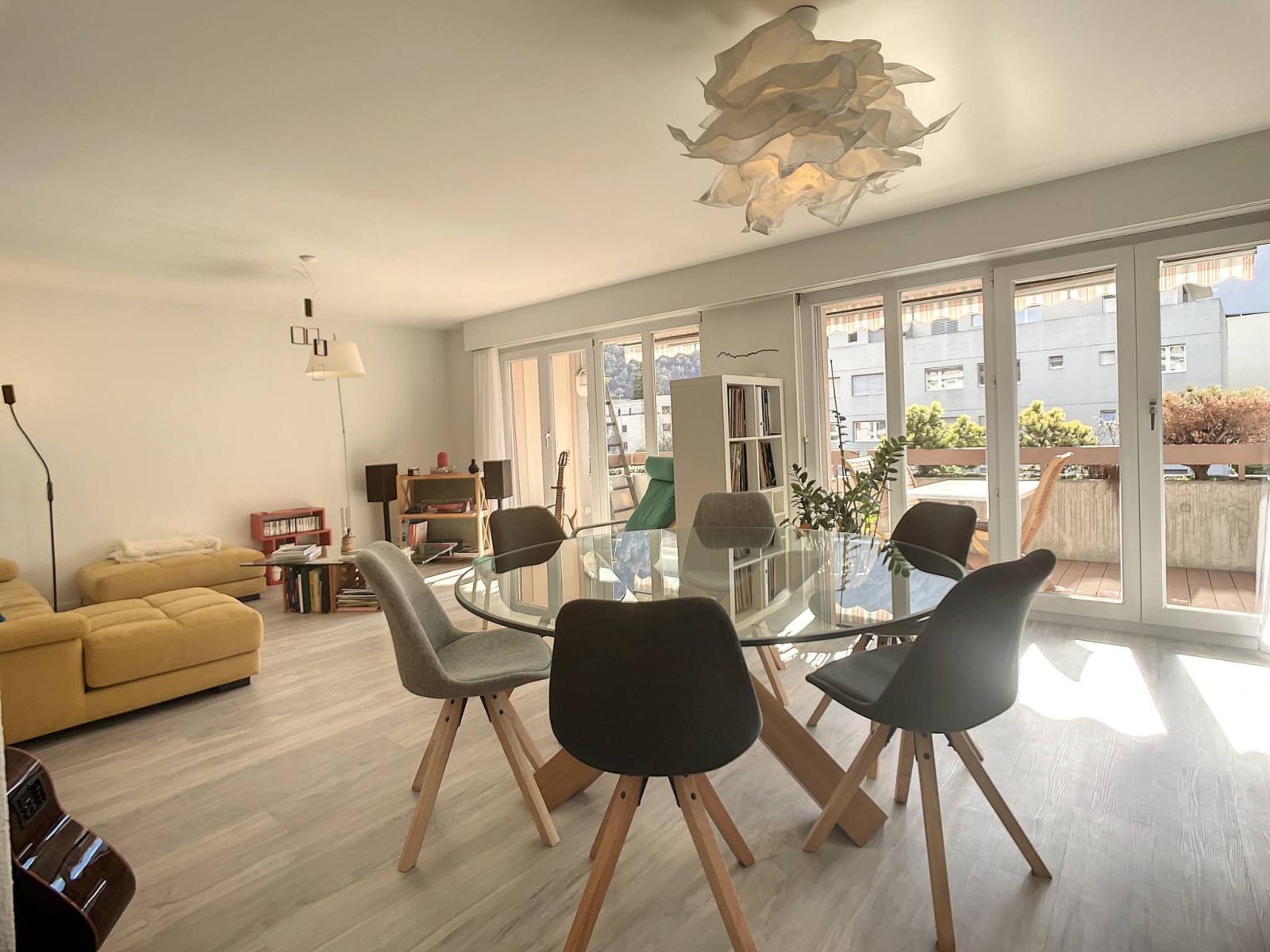 Erhabene 4,5-Zimmer-Wohnung, renoviert im Jahr 2018, ideal gelegen im Viertel „de la Fusion“, etwa 5 Gehminuten vom Hyperzentrum von Martigny und 7 Gehminuten von Martigny-Bourg entfernt, in der Nähe aller Annehmlichkeiten in einer ruhigen Wohngegend .