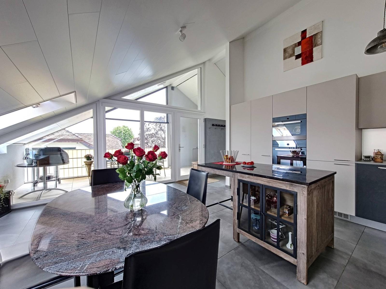 Ruhige und wohnliche Dorflage, am Rande von Cossonay (Allens) und all seinen Annehmlichkeiten (Schule, Kultur, Transport, Geschäfte, Apotheken usw.). Es handelt sich um eine ziemlich untypische und moderne 3,5-Zimmer-Wohnung (92,5 m² gewichtet), die wir haben Lassen Sie uns Ihr Angebot entdecken. Es ist giebelig, auf halber Höhe und daher an drei Seiten offen.