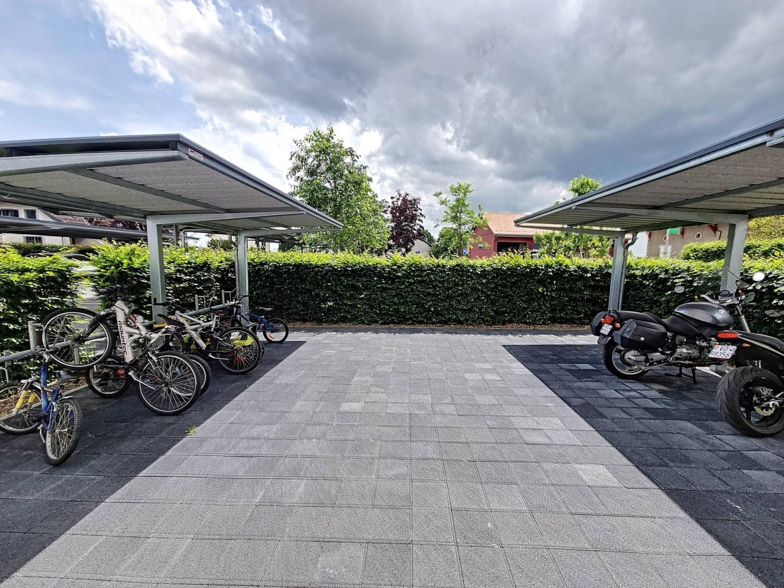 Es verfügt außerdem über einen überdachten Aussenparkplatz für CHF 25.000.- zusätzlich zum Verkaufspreis der Wohnung sowie einen großen Keller.