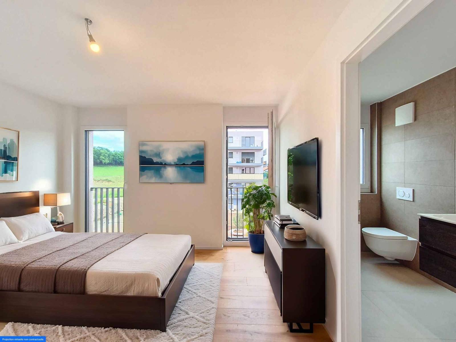 Ihre Vorteile: - Moderne und hochwertige Innenausstattung, Ausführung nach Ermessen des Mieters - Privatgärten, Terrassen oder große Balkone - Abfolge von Räumen in grasbewachsenen und baumbestandenen Ebenen - Spielbereich aus Holz - Grundstück vollständig über Wege und Rampen zugänglich - Oberfläche Besucherparkplätze - Tiefgarage für Autos, Motorräder und Fahrräder